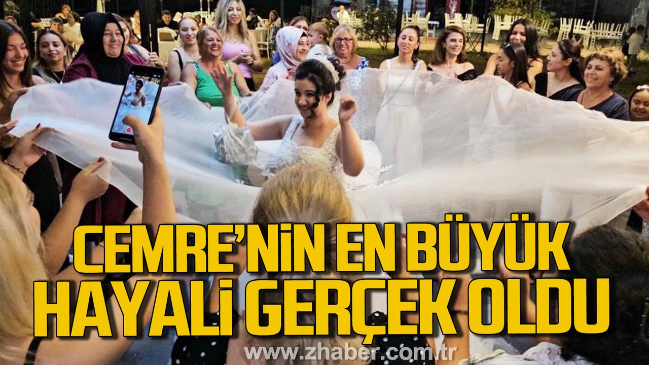 Zonguldak’ta yaşayan 25 yaşındaki Cemre Çınar, en büyük hayalinin gelin olmak olduğunu annesi Canan Kayaşimşir'e anlattı. Kızının bu isteğine kayıtsız kalmayan anne, gelin arabası, pasta, orkestra ve gelinlik gibi tüm detayları düşünerek bir düğün organizasyonu hazırladı.