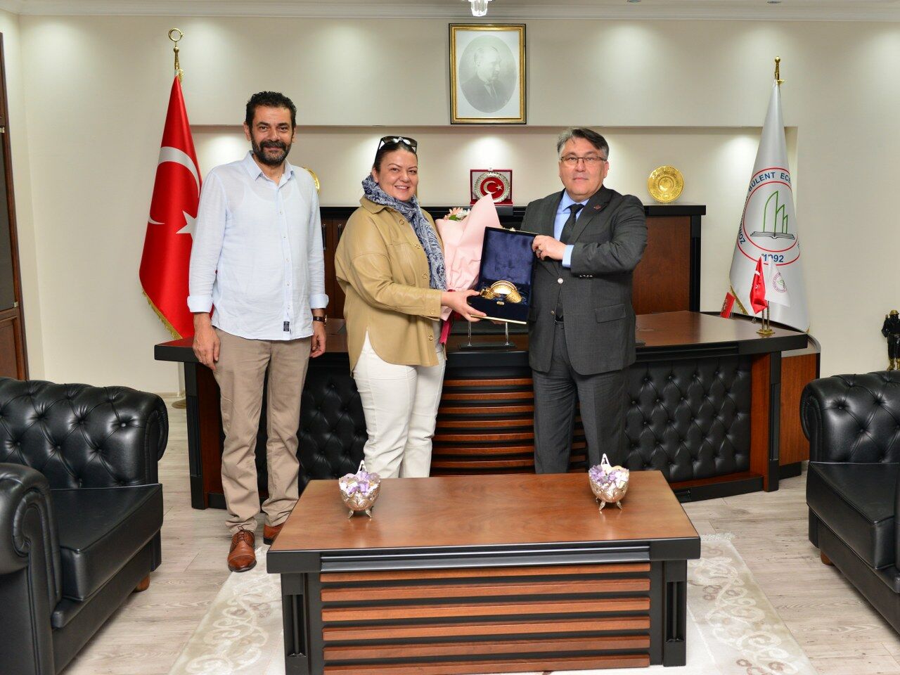 Rektör Prof. Dr. İsmail Hakkı Özölçer, 27. Dönem MHP İzmir Milletvekili Hasan Kalyoncu ve eşi