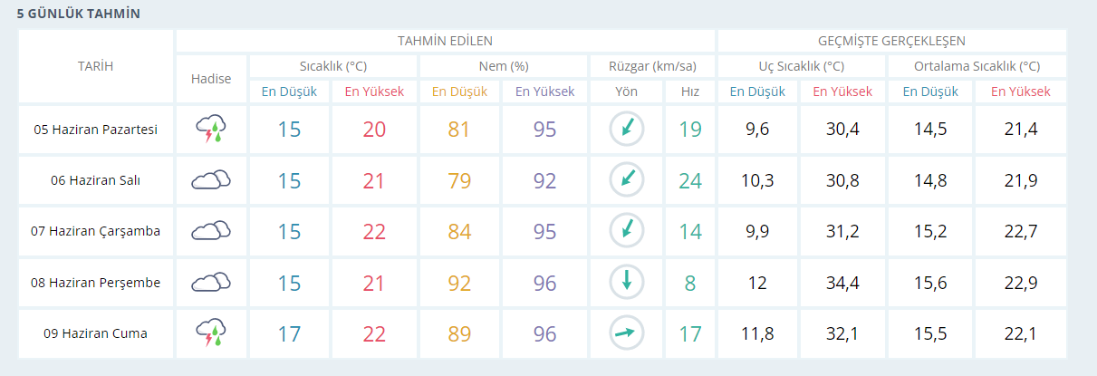 Meteoroloji Genel Müdürlüğü'nden alınan günlük hava raporlarına göre, bu hafta Zonguldak'ta sıcaklığın en düşük 15, en yüksek 22 olması bekleniyor. Nem oranı ise en düşük 79 iken en yüksek %96 olacağı tahmin ediliyor.
