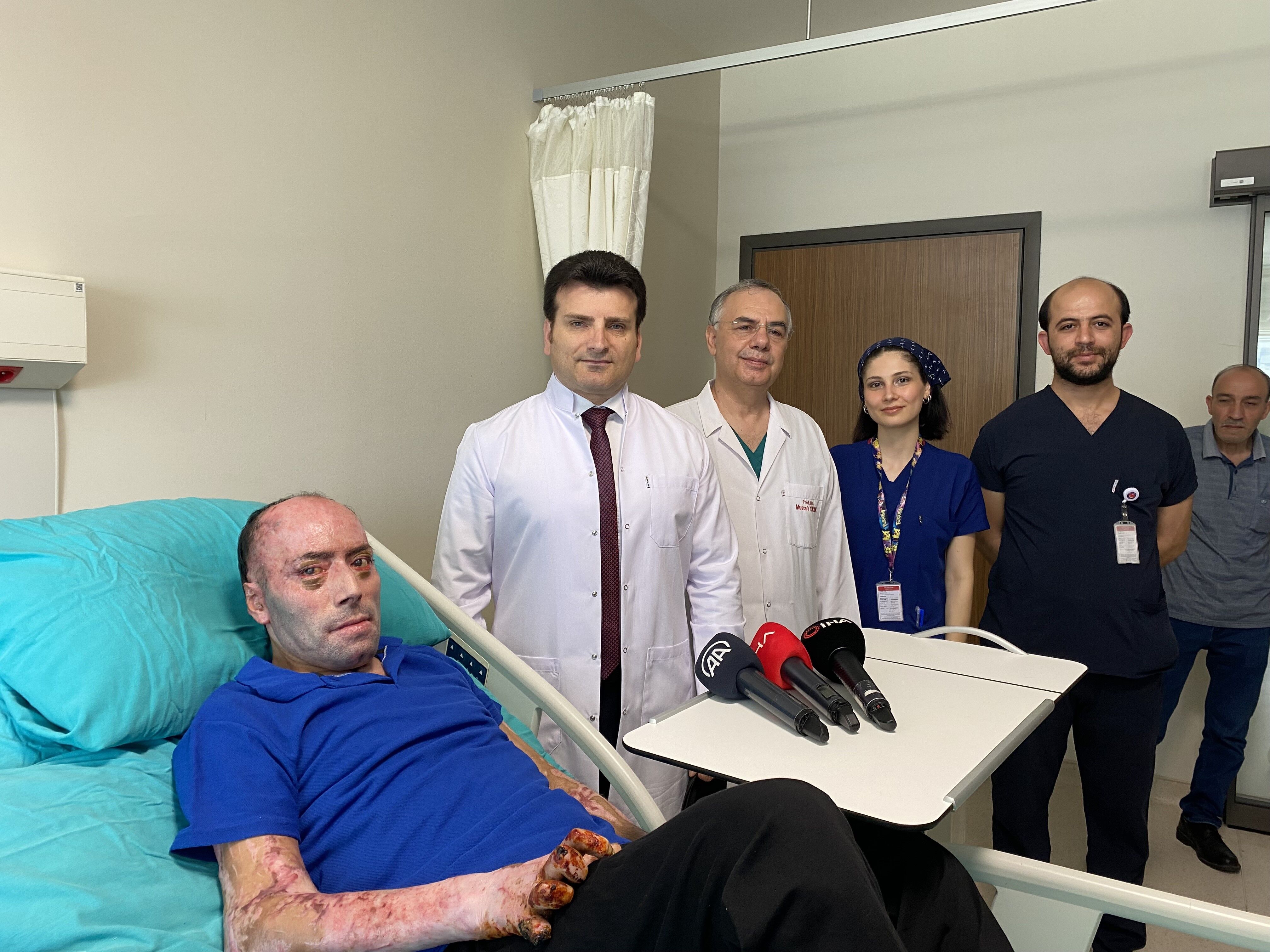 Yüzde 90’a ulaşan yanık vakalarında ölüm oranlarının çok yüksek olduğunu ifade eden Başakşehir Çam ve Sakura Şehir Hastanesi Yanık Tedavi Merkezi Sorumlusu Prof. Dr. Mustafa Turan, Ak’ı taburcu edebilmenin mutluluğunu yaşadıklarını ifade etti. Prof. Dr. Turan, “8 ay önce çok ağır yaralı bir durumda hastanemize kabul edilmişlerdi ve yüzde 90 civarında ağır yanıkları söz konusuydu. 4,5 ay kadar uyutuldu, şu ana kadar toplamda 140 civarı orta, küçük, büyük ölçekte ameliyatlar gerçekleştirildi. Sonuçta da sağlığına kavuşmuş bir vaziyette taburculuğunu gerçekleştiriyoruz, memleketlerine gönderiyoruz. Literatür olarak ölüm oranları çok yüksek olan yanık grupları, ufak plastik cerrahi eksikleri var. Çok ciddi kırıkları da vardı, onlarda burada düzeltmiş oldu, kontrollerini daha sonra yaptıracağız” ifadelerini kullandı.