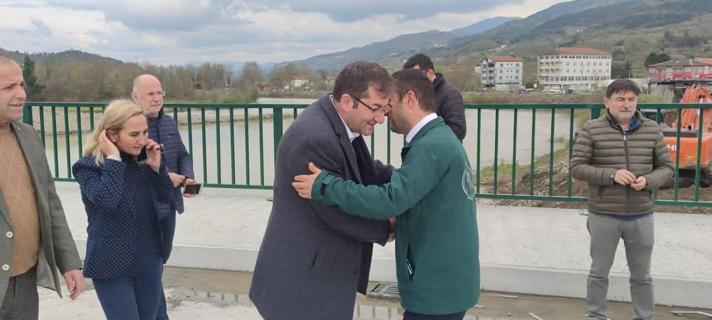 DSİ Bölge Müdürümüz YasinDevrim, İlçe Başkanımız Murat Durdubaş,İl Genel Meclis Üyelerimiz, Belediye Meclis Üyelerimiz ,Yönetim Kurulu Üyelerimiz ile Üniversite Bağlantı Köprüsü Yan Yolu projesini'ninde incelemelerde bulunduk. Bittiğinde TOKİ ,Üniversite ve çevre köyleri için Önemli bir projeyi daha tamamlıyor olacağız. Devrek Çayı, Karşıyaka dere ıslahı projelerimizde, eksik kalan bölümlerede kısa sürede başlıyoruz . Yüklenici Firmamız BNB inşaat Yetkilileri Berham Baykara , Berat Baykara'ya kısa zamanda bu köprüyü tamamladıkları için Teşekkür ediyoruz” dedi.