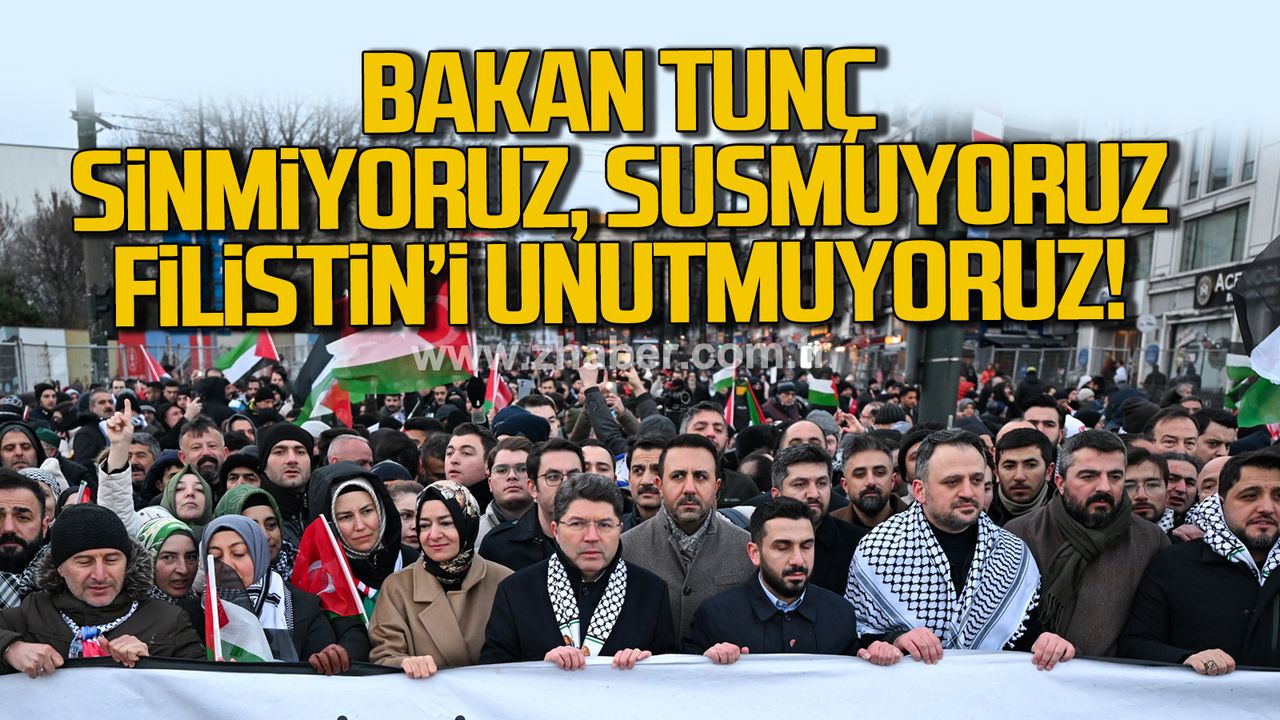 Adalet Bakanı Yılmaz Tunç da yürüyüşe katılarak vatandaşlarla birlikte Gazze’de yaşanan katliamlara dikkat çekti. Tunç, burada yaptığı konuşmada, “Sinmiyoruz, susmuyoruz, Filistin’i unutmuyoruz.” ifadelerini kullandı.