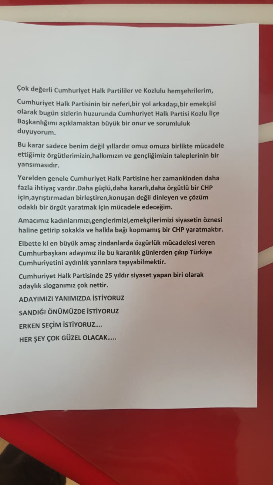 Cumhuriyet Halk Partisi (CHP) Genel Merkezi’nin kongre takvimini açıklamasının ardından il ve ilçe teşkilatlarında kongre hazırlıkları başladı. Sürecin başlamasıyla birlikte ilçe başkanlıklarına yönelik adaylık açıklamaları da gelmeye başladı.