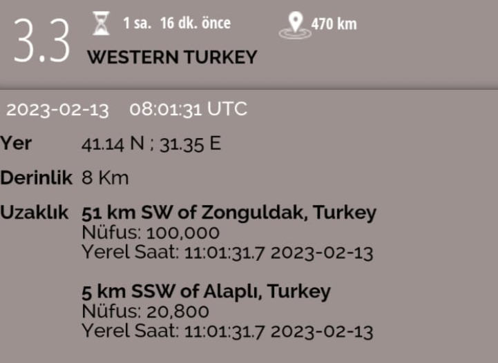 Deprem Zonguldak’ta da hissedildi. Depremin en çok hissedildiği Alaplı’da bazı vatandaşlar panikle evlerini terk ederek yakınlarından haber almaya çalıştı.