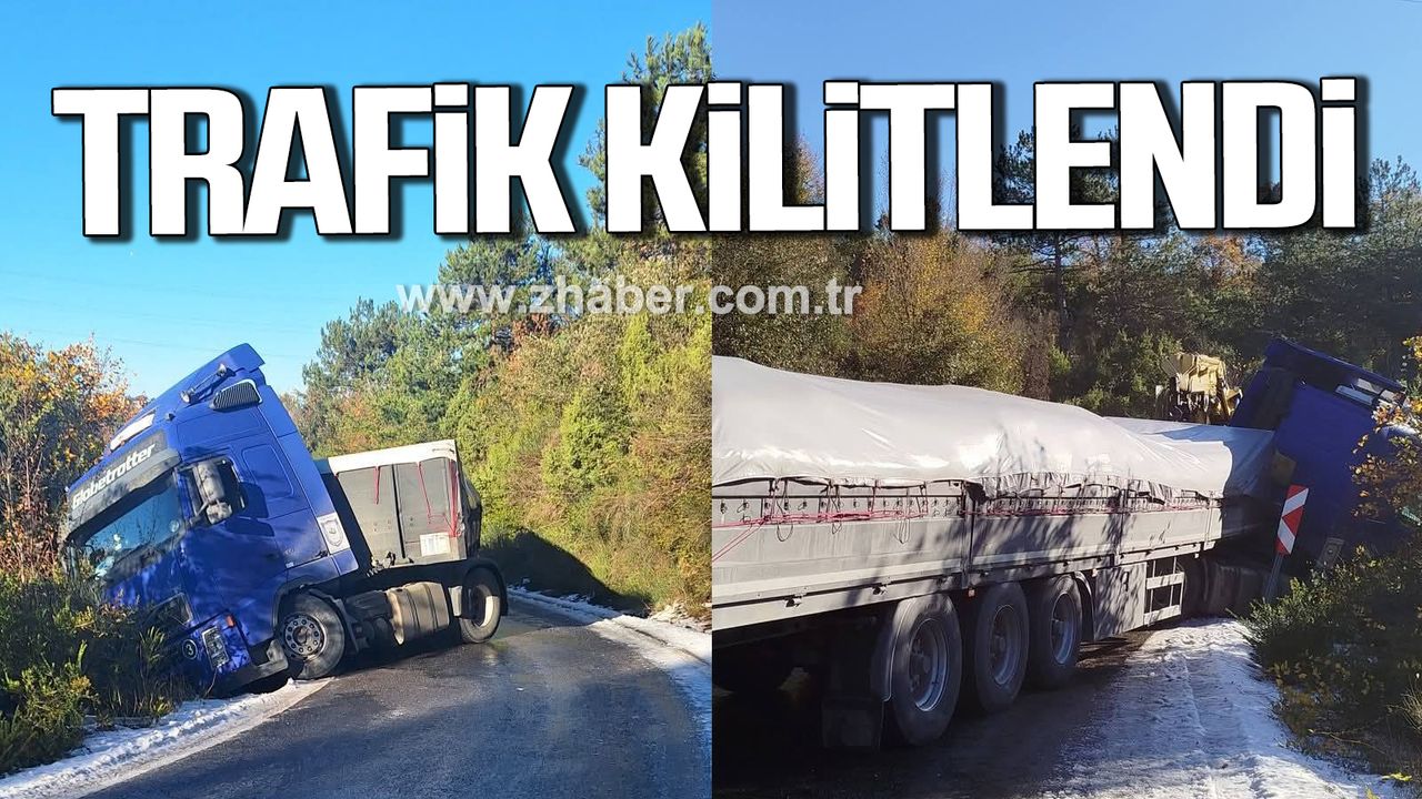 Zonguldak’ın Alaplı ilçesi ile Osmanlı köyü arasında virajı alamayan tır, yoldan çıktı. Kazada şans eseri yaralanan olmazken araçta maddi hasar meydana geldi. İhbar üzerine olay yerine sağlık ve jandarma ekipleri sevk edildi.