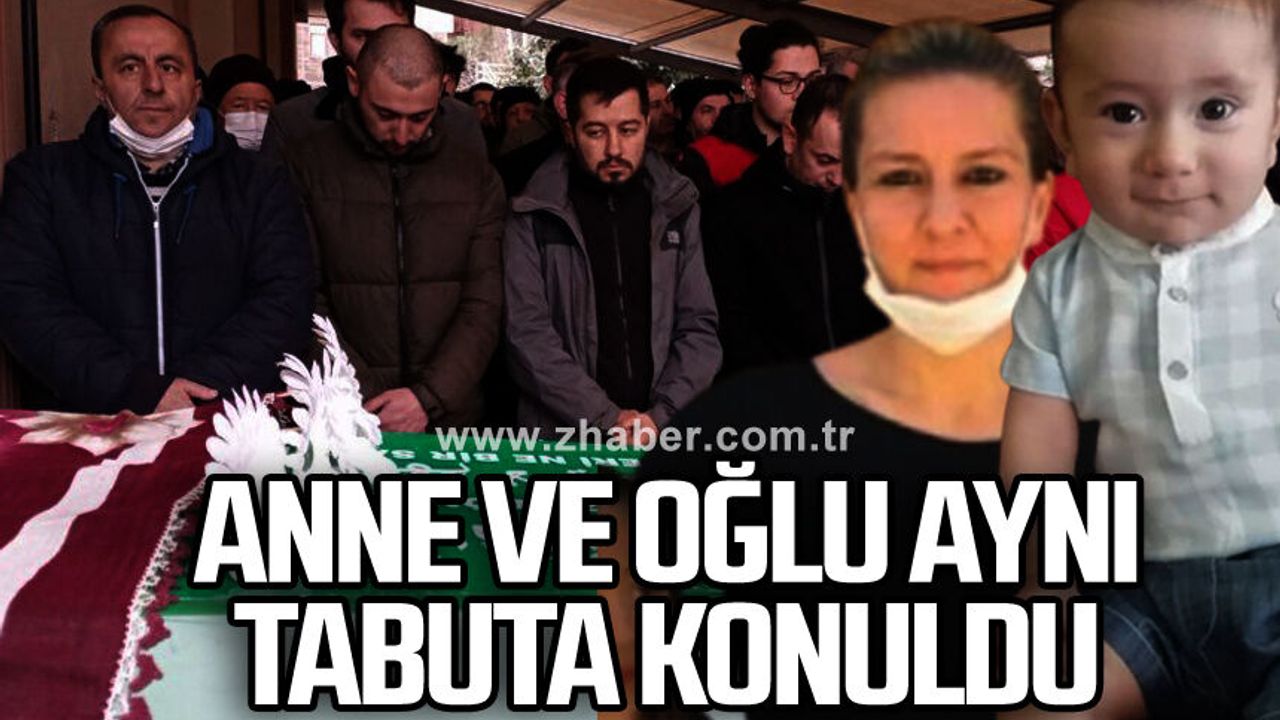 İlçe Müftüsü Sabri Kütükçü cenaze namazını kıldırırken anne Sevda ile 2,5 yaşındaki oğlunun bir tabuta konulduğunu ve aynı mezara defin edileceğini söyledi.