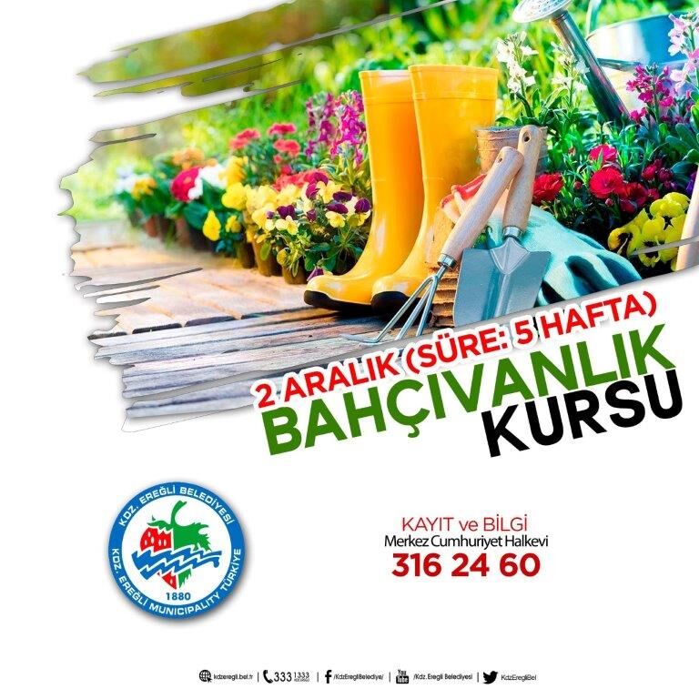 Kdz. Ereğli Belediyesi Temizlik İşleri Müdürlüğü Park Bahçeler Birimi tarafından düzenlenen ve geçtiğimiz dönemlerde yoğun ilgi gören "Bahçıvanlık Kursu" programı, Cumhuriyet Halk Evi’nde başlıyor.