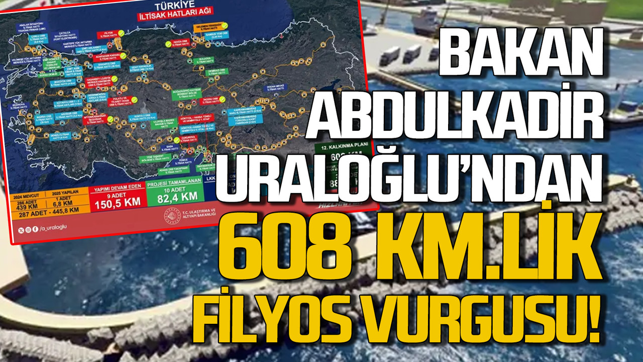 Ulaştırma ve Altyapı Bakanı Abdulkadir Uraloğlu’nun Filyos Projesi ve Filyos Limanını ön plana çıkardığı demiryolu ağı ile ilgili yaptığı açıklama şöyle: “12. Kalkınma Planı kapsamında ise 2028 yılında iltisak hattı uzunluğunu 608 kilometreye ulaştırmayı hedefliyoruz” dedi.