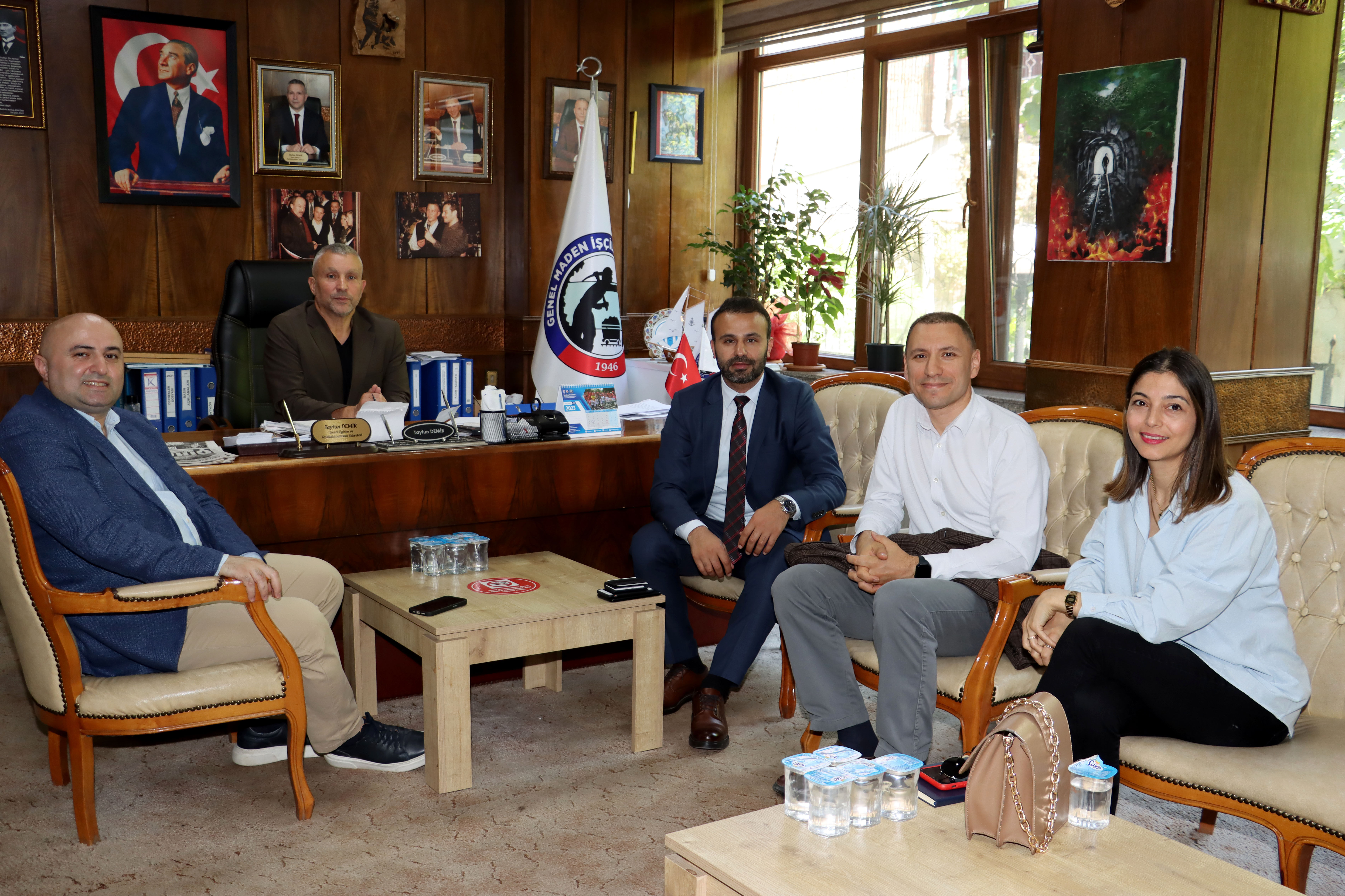 Finansbank Zonguldak Şube Müdürü Abdullah İpek, İstanbul Çiftehavuzlar Şube Müdürü Tuncay Sarımaden, Çiftehavuzlar Şube Yönetmeni Engin Çelenk ve Zonguldak Şubesi Portföy Yöneticisi Güler Güleç, GMİS Genel Teşkilatlandırma ve Eğitim Sekreteri Tayfun Demir’i ziyaret etti. Finansbank Şube Müdürleri Sarımaden ve Çelenk, çalışmaları hakkında Demir’e bilgiler verdi. Demir, ziyaret nedeniyle banka yöneticilerine teşekkür etti.