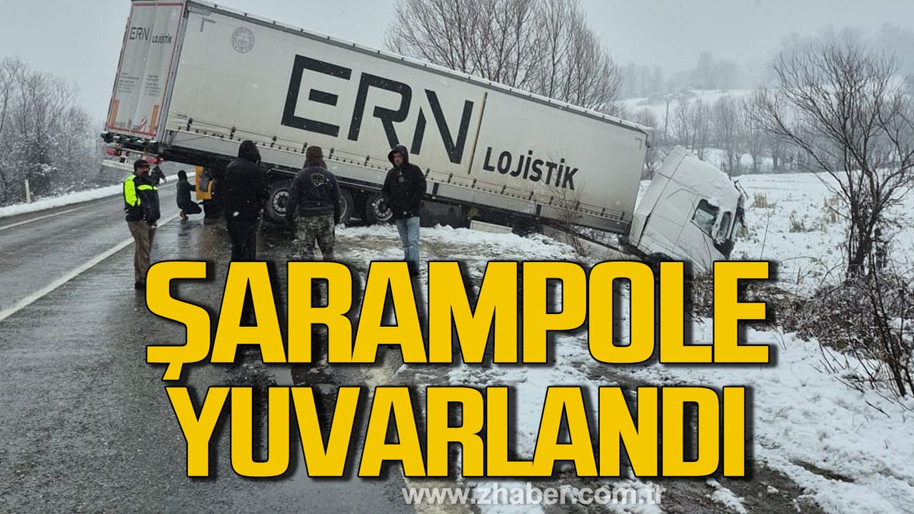 Bartın Kozcağız yolunda kaygan zeminde sürücüsünün kontrolünden çıkan tır şarampole yuvarlandı. Çevredekilerin ihbarı üzerine olay yerine sağlık ve polis ekipleri sevk edildi. Yaralanan sürücü olay yerinde yapılan ilk müdahalenin ardından ambulansla hastaneye kaldırıldı.