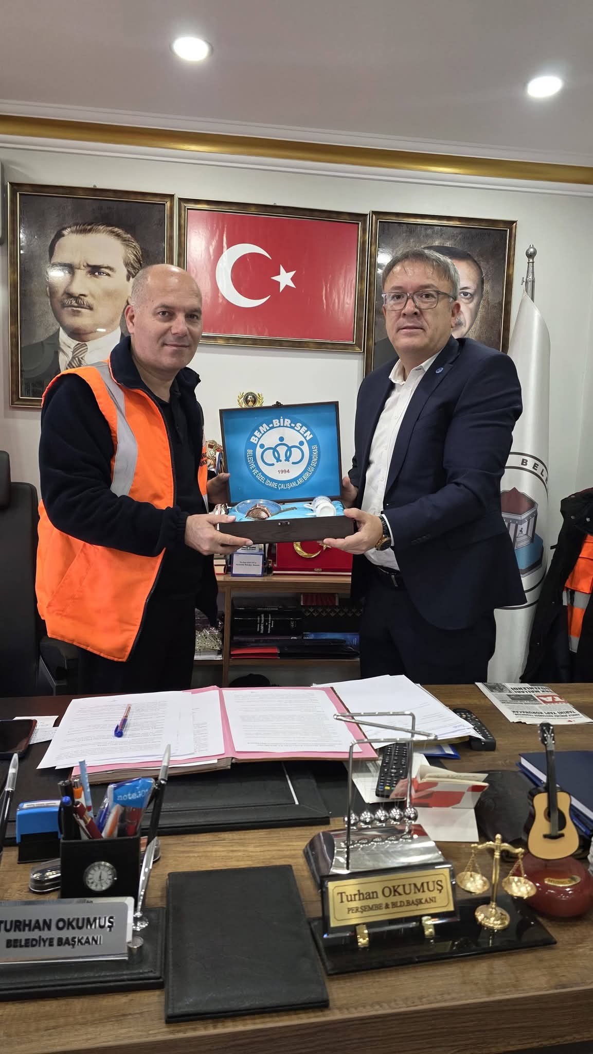 “Perşembe Belediyemizde ve Nebioğlu Belediyemizde görev yapan memur çalışanlarımıza yönelik; yetkili Sendika olarak patenti Sendikamız BEM-BİR-SEN'e ait olan Sosyal Denge Tazminatı Sözleşmesini Belediye Başkanlarımız Turhan Okumuş ve Ali Özdal ile birlikte imzaladık. Bu vesileyle; personeline kıymet vermesi, nezaketi, samimiyeti ve hüsn-ü kabullerinden dolayı Turhan Okumuş ve Ali Özdal Başkanlarımıza en içten şükranlarımı sunarım. Çalışanlarımız ve aileleri için hayırlı, bereketli olsun."