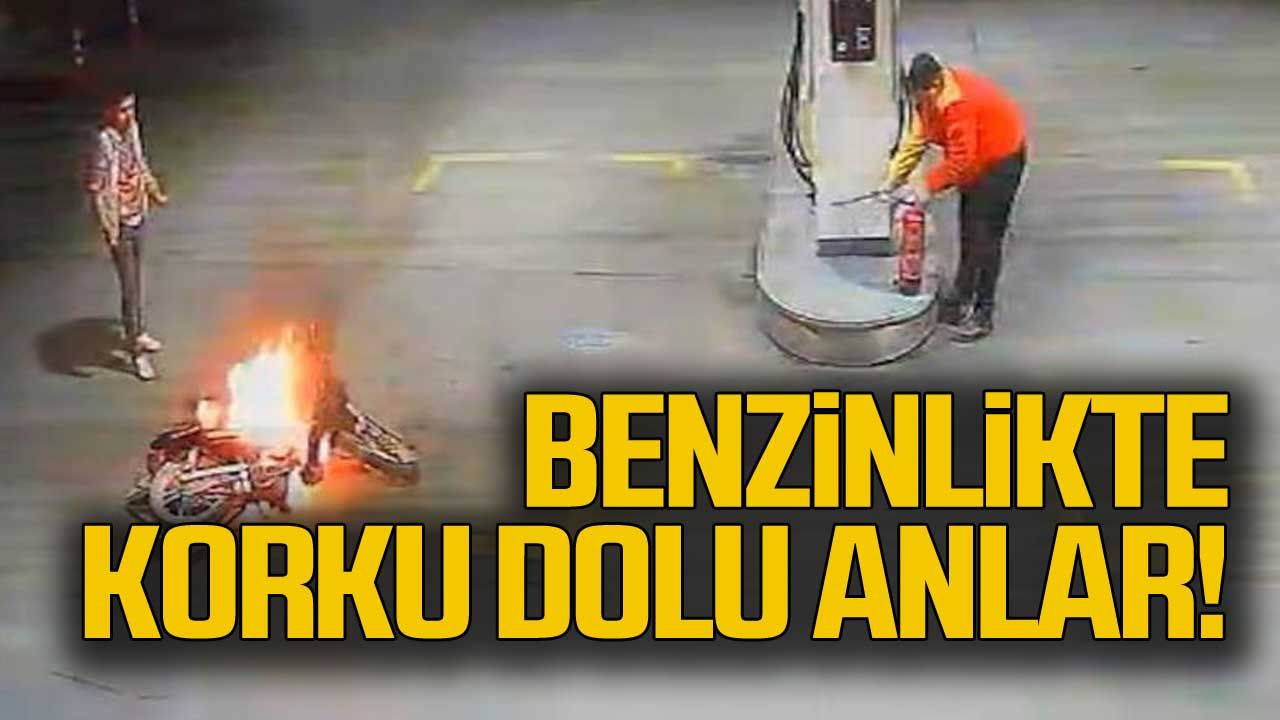 Yangın anı akaryakıt istasyonunun güvenlik kameraları tarafından saniye saniye görüntülendi. Görüntülerde yakıtını alan motosikletin aniden alev aldığı, sürücü ve arkasındaki yolcunun kaçarak yanmaktan kurtulduğu görüldü.