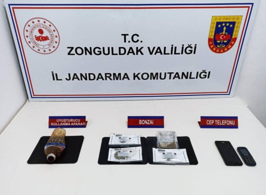 Valilikten yapılan açıklamaya göre, Zonguldak İl Jandarma Komutanlığı ekiplerince, 18 Nisan 2023 tarihinde, Kozlu ilçesi mülki sınırları içerisinde Adli Makamlardan alınan arama kararına istinaden (2) araçta ve araçta bulunan 3 şahsın üzerinde yapılan arama neticesinde, 40 gram bonzai, 3 adet uyuşturucu kullanma aparatı, 4 adet cep telefonu ele geçirildi.