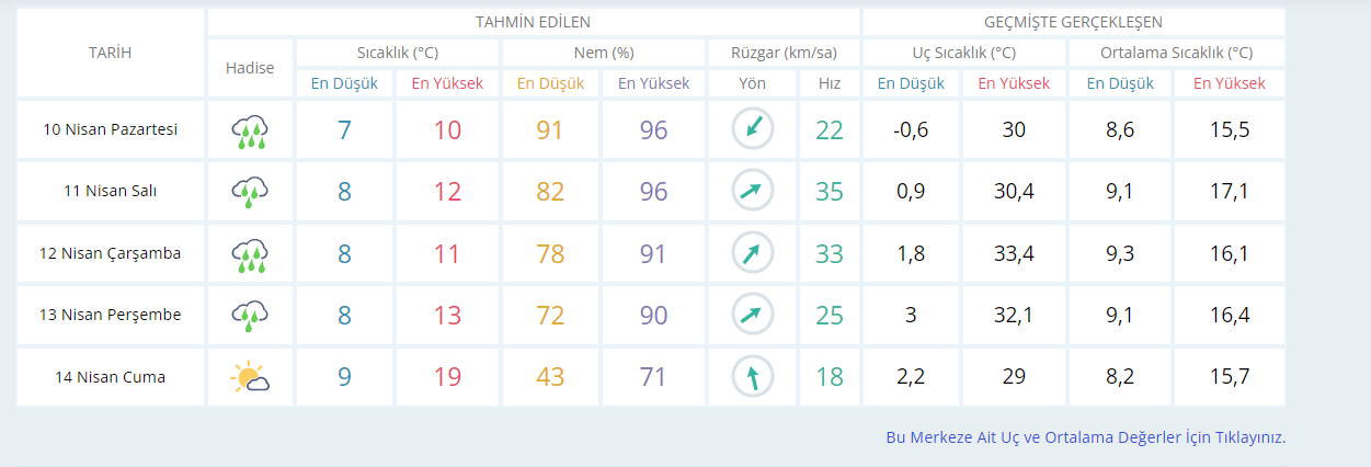 10 Nisan Pazartesi itibariyle Zonguldak haftaya yağışlı bir hava ile başladı. Meteoroloji Genel Müdürlüğünün yayınladı 5 günlük rapora göre cumaya kadar yağışların devam edeceği tahmin ediliyor. Yayınlanan rapor şu şekilde;