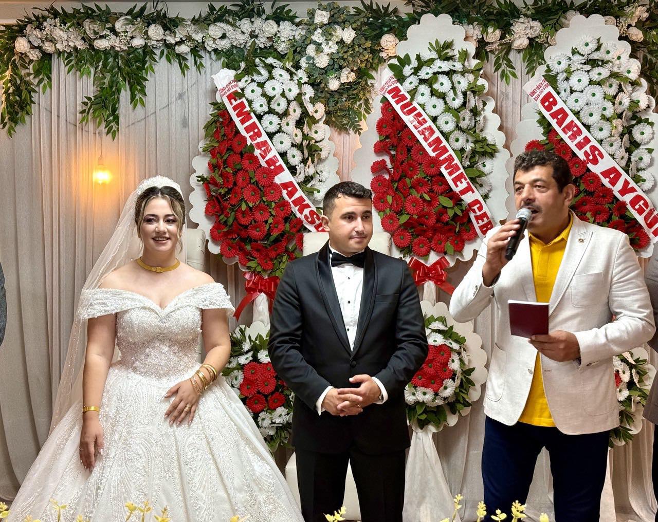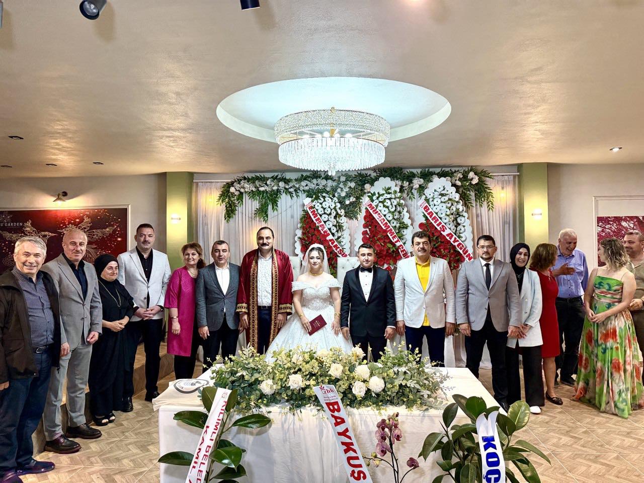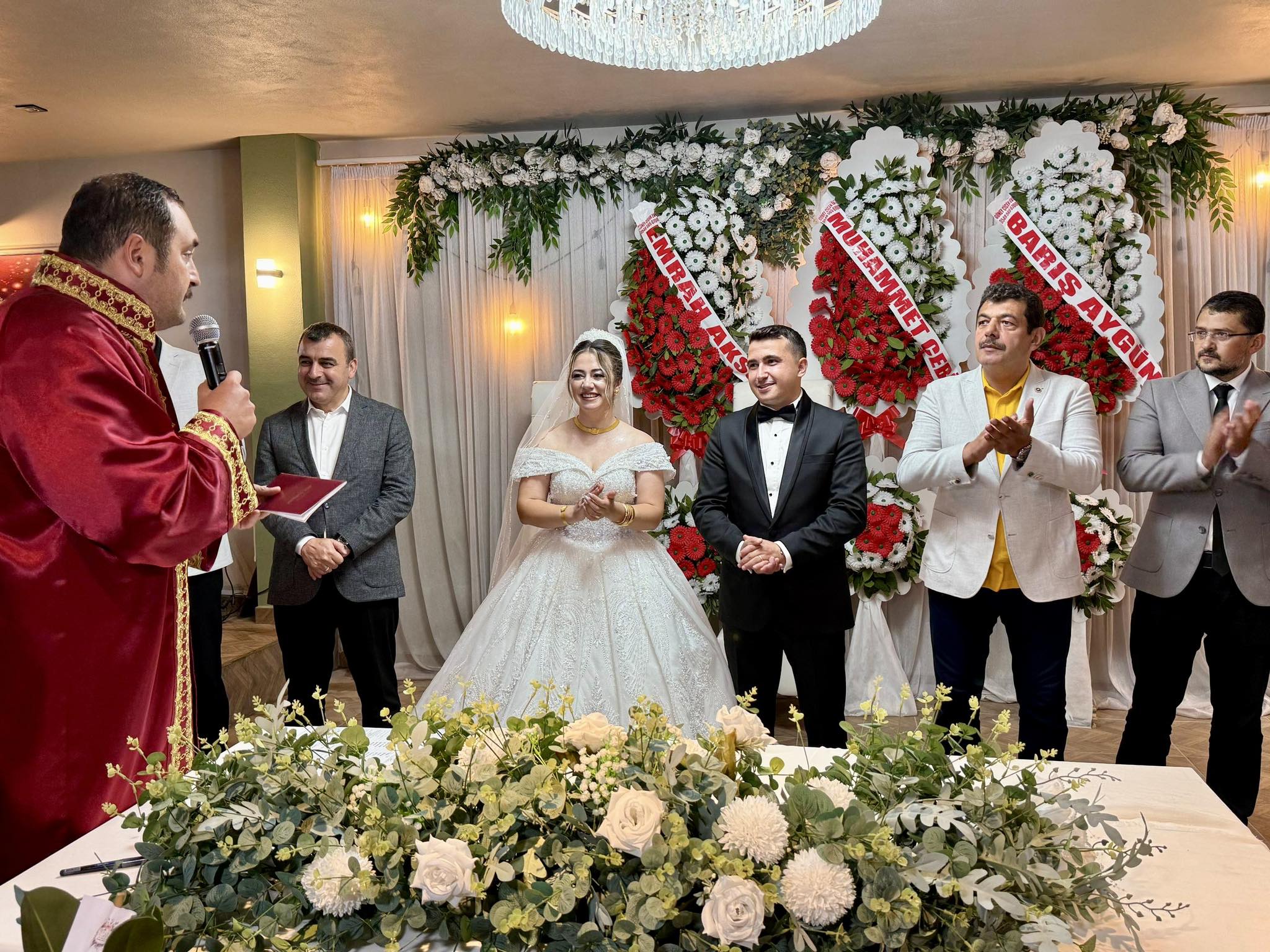 Kozlu Garden'da yapılan nikah merasiminde çiftin nikahını Kozlu Belediye Başkanı Altuğ Dökmeci kıydı.