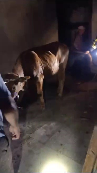 Olay, Merkeze bağlı Yukarıkızılcaören Köyü Düz Mahallede meydana geldi. İsmi öğrenilemeyen bir vatandaşa ait kurbanlık inek sahibinden kaçarken bir evin çatı katına çıktı. Vatandaş, hayvanını indirmekte başarılı olamayınca itfaiye ekiplerinden yardım istedi. Olay yerine gelen ekiplerin uzun uğraşları sonucunda büyükbaş hayvan yere indirilerek sahibine teslim edildi.