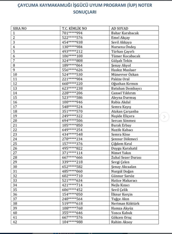 Çaycuma Kaymakamlığı bünyesinde, kamusal alanların temizlik, bakım ve onarım faaliyetlerini desteklemek amacıyla İşgücü Uyum Programı (İUP) kapsamında istihdam edilecek personellere ilişkin noter kurası gerçekleştirildi.