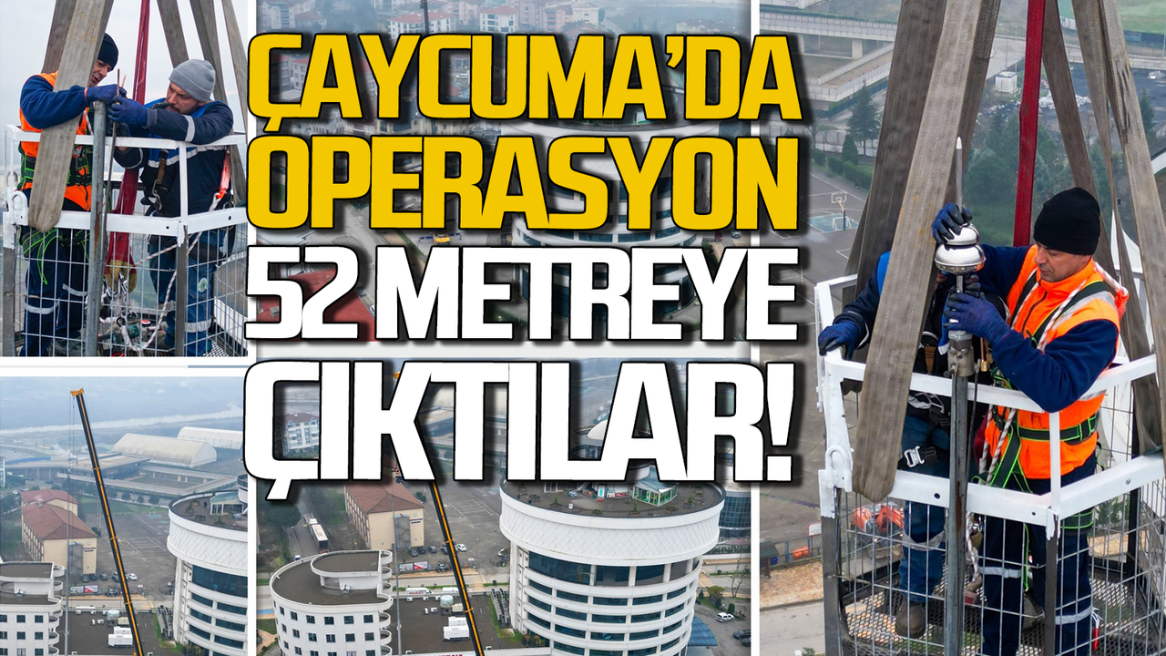Çaycuma Belediyesi hizmet binasının hemen yanında yer alan 52 metre yüksekliğindeki paratonerin, düşen bir yıldırım nedeniyle iş görmez hale gelen iyon jeneratörü yenilendi. Fırtına sırasında oluşan elektriksel alanı iyonize ederek, olası bir yıldırım düşmesinde tüm enerjiyi üzerine çeken küresel görünümlü parçanın değiştirilmesiyle; belediye binası ve çevresi yıldırıma karşı güvenli hale getirildi. Yaklaşık iki saat süren operasyonu başarıyla tamamlayan ekipler, zorlu bir görevi daha tamalayıp sıra dışı bir işe atmanın sevincini yaşadı.