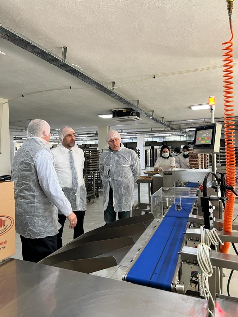 Çaylı Kurabiye firması sahibi Mücahit Savaş Çaylı, çaylı kurabiyesinin kuruluşundan bu yana gelişimi ve büyüme süreci hakkında heyete bilgi verdi. Firmanın yaklaşık 100m2’lik bir alanda faaliyete başladığını, hızlı bir şekilde yurtiçi pazarlarda yer bulduklarını ve büyüdüklerini belirterek halen 2000 m2 lik bir alanda imalat yaptıklarını ancak, yurtiçi pazarlardaki artış ve yurtdışı pazarlara da açılmalarıyla birlikte fiziki alanın yetersiz kalmaya başladığını, asgari 4000m2 lik kapalı alana sahip bir fabrika kurmak için sanayi parseli taleplerinin olduğunu ifade etti. Zonguldak Ticaret ve Sanayi Odası öncülüğünde yapılmakta olan sanayi sitelerinden yada Gökçebey Organize Sanayi Bölgesinden yer istediklerini söyledi. İngiltere, Amerika, Hollanda, Bulgaristan dahil birçok ülkeye ihracat yaptıklarını, Avrupa piyasasından daha fazla pay almak için Almanya pazarına da girmeyi hedeflediklerini bu konuda da Zonguldak Ticaret ve Sanayi Odası’ndan destek beklediklerini söyledi. Sonrasında heyete fabrikayı gezdirerek üretim süreçleri, kullandıkları makinalar, üretim hattı ve pazarlama ile ilgili bilgilendirmelerde bulundu.