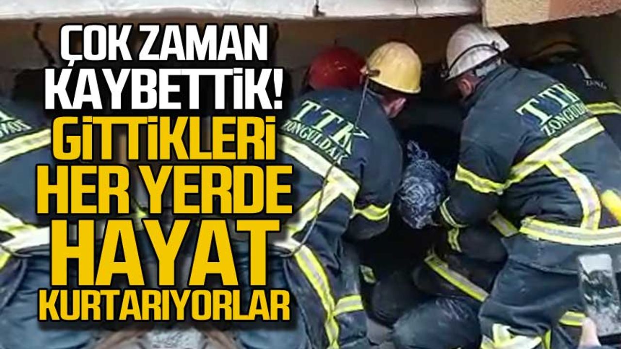 Zonguldak’tan uçakla değil karayoluyla gönderilmek istendikleri için deprem bölgesine gecikmeli olarak ulaşabilen kahraman maden işçileri girdikleri her yerden canlı çıkarıyor.