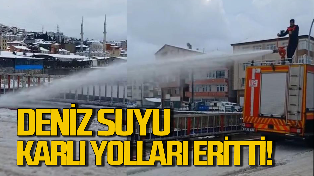 Alaplı Belediyesi İtfaiye Müdürü Sinan Taşkın ise deniz suyunun karla mücadelede büyük avantaj sağladığını ifade ederek, "İtfaiye araçları ve su tankerleriyle balıkçı barınağından deniz suyu çekiyoruz. İlçe merkezi başta olmak üzere mahallelerde, özellikle rampalı bölgelerde deniz suyu ile yıkama yaparak yolları temizliyoruz. Bu uygulamayı her gün sürdüreceğiz. Tuzlu su sayesinde buz çok daha hızlı eriyor" diye konuştu.