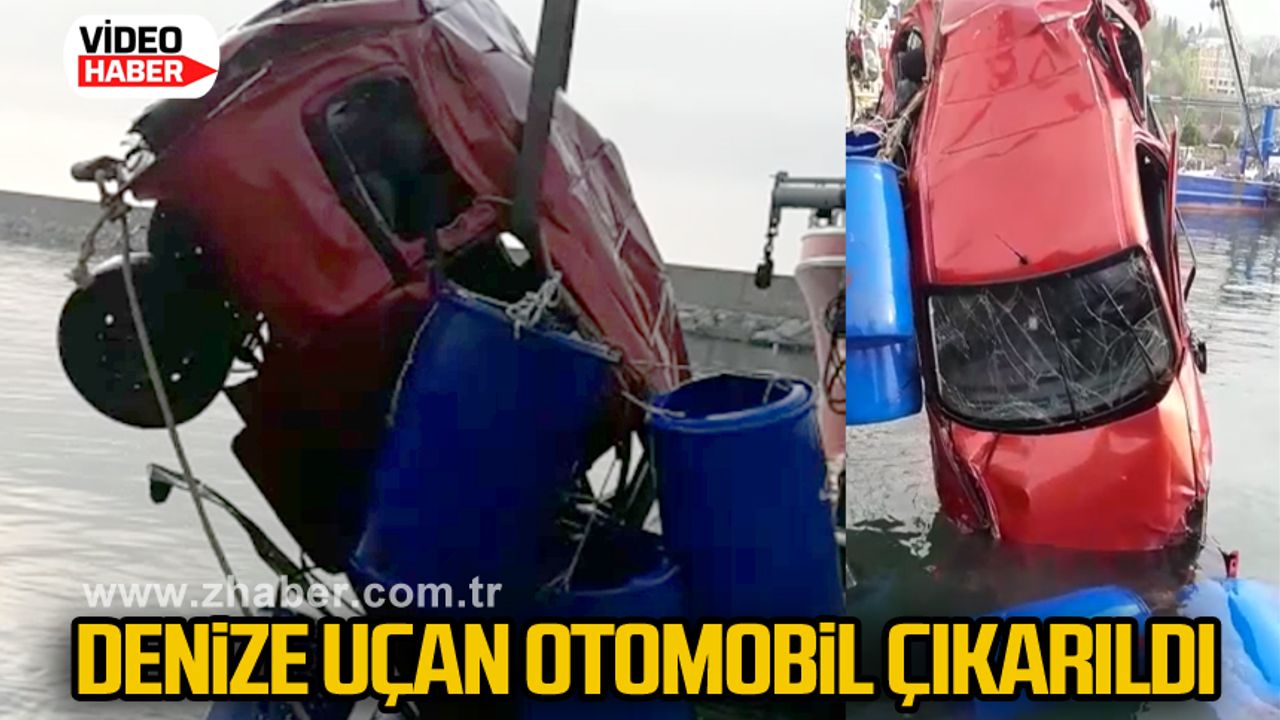 Değirmenağzı mevkiinde tünel çıkışında denize uçan aracın çıkarıldığı anlar cep telefonu kamerası ile görüntülendi.