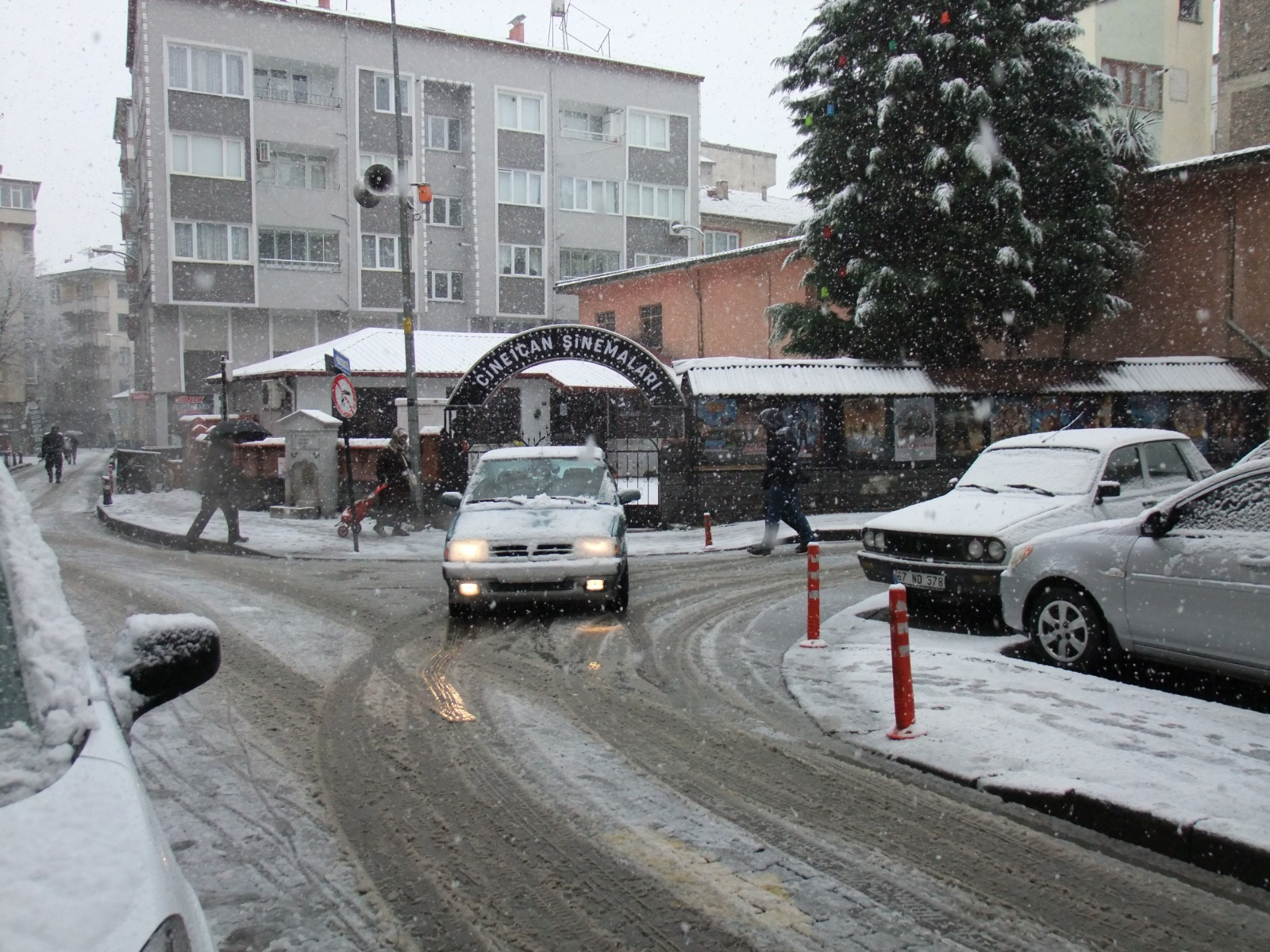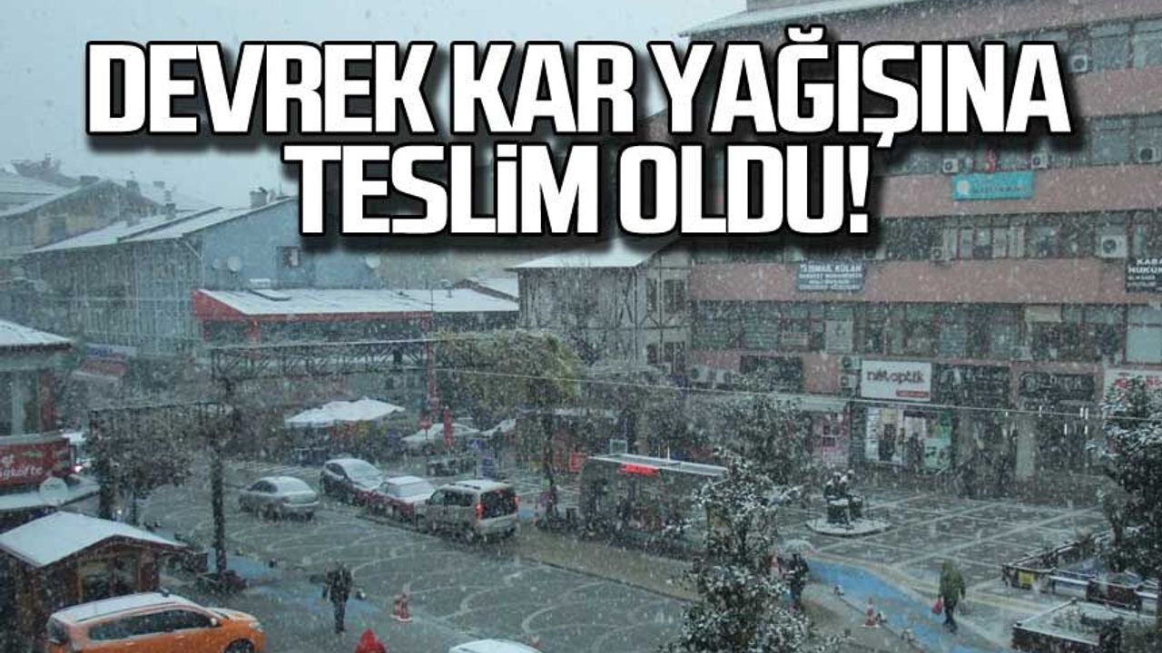 Meteoroloji Genel Müdürlüğü'nün kar yağışı uyarısı yapmasının ardından Devrek şehir merkezinde kar yağışı başladı.