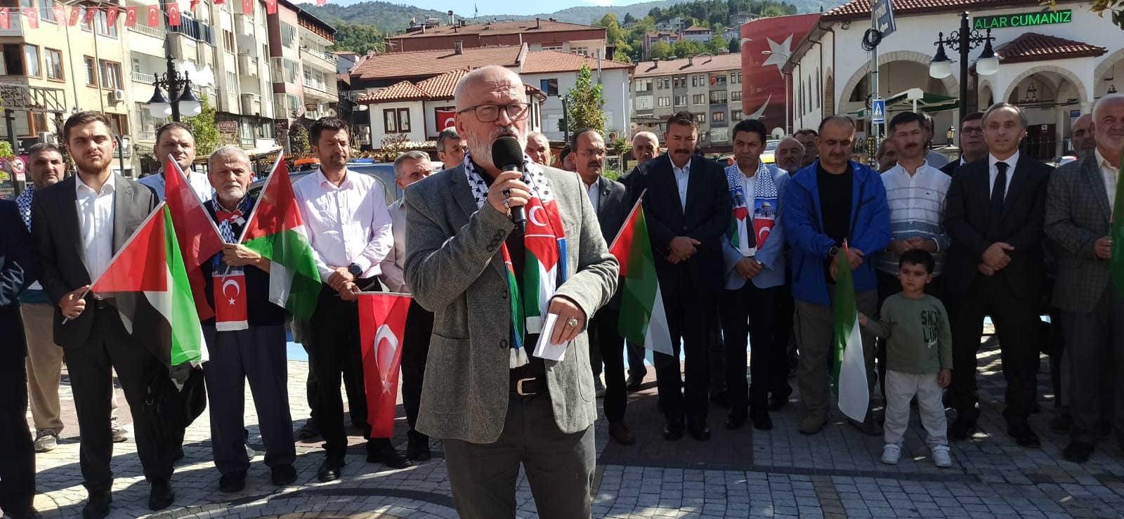 Açıklama, "Kahrolsun Siyonizm", "Kudüs Elbet Kurtulacak" ve "Yaşasın Özgür Filistin" sloganlarının ardından sona erdi.