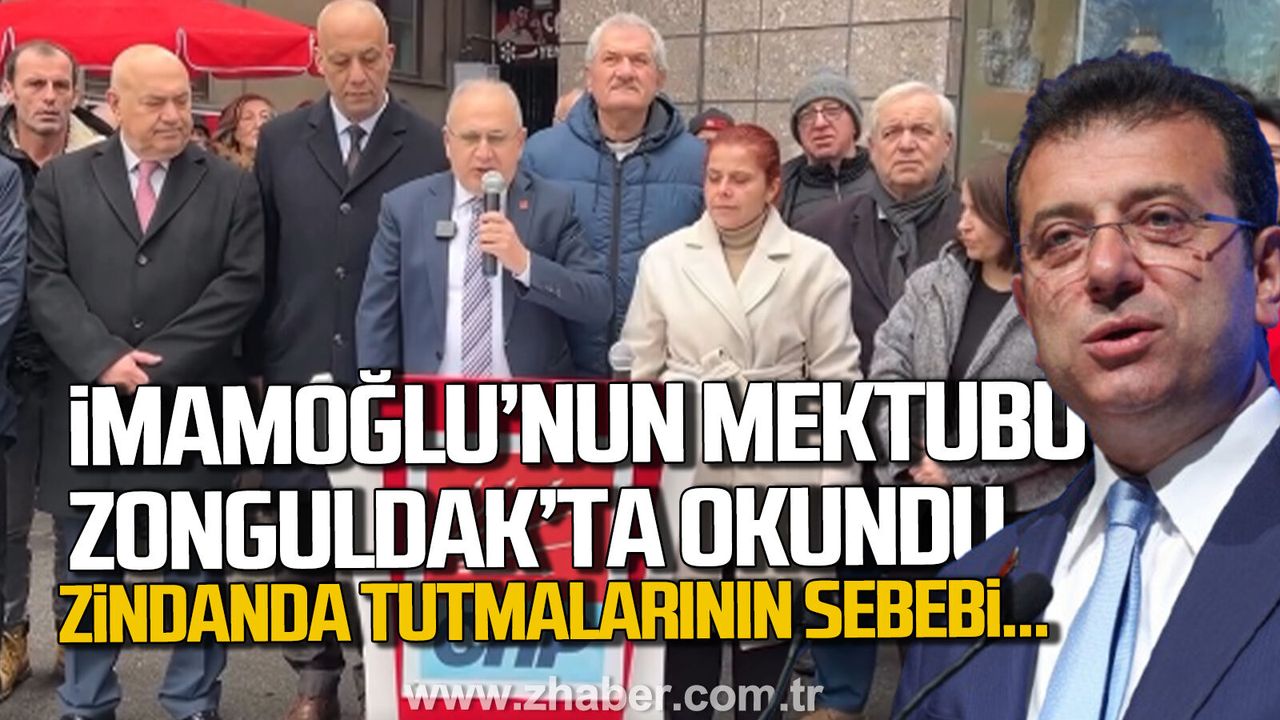 Cumhuriyet Halk Partisi (CHP) Zonguldak İl Başkan Vekili Metin Bank, Silivri cezaevinde tutuklu bulunan İstanbul Büyükşehir Belediye Başkanı Ekrem İmamoğlu’nun kaleme aldığı mektubu İl Başkanlığı binası önünde vatandaşlara okudu. Programa; CHP Merkez İlçe Başkanı Nazmi Özden, Kilimli İlçe Başkanı Erdinç Kargidan, CHP Kozlu İlçe Başkanı Merve Arslan ve partililer katılım sağladı.