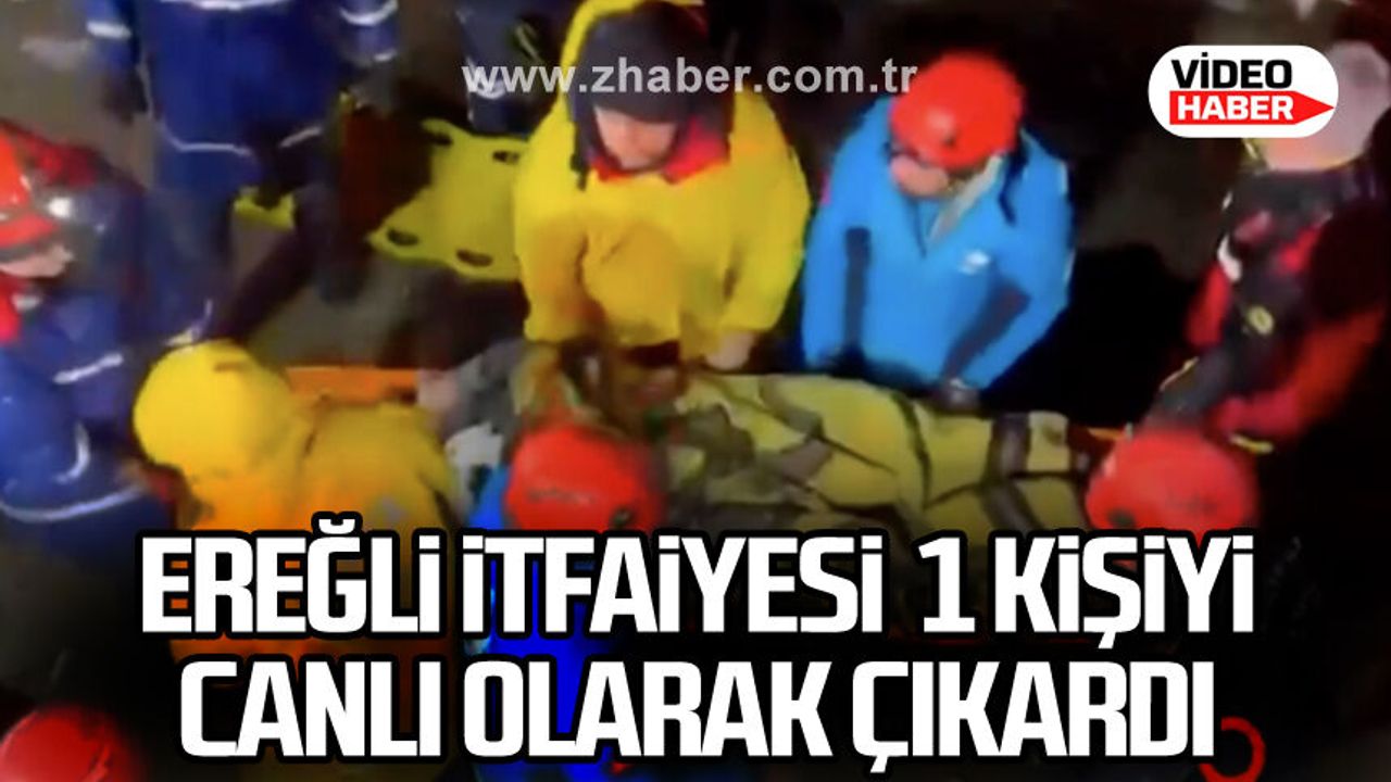 Kdz. Ereğli Belediyesi İtfaiyesi Arama Kurtarma ekipleri ve Eridak enkazdan 1 kişiyi canlı olarak çıkardı.
