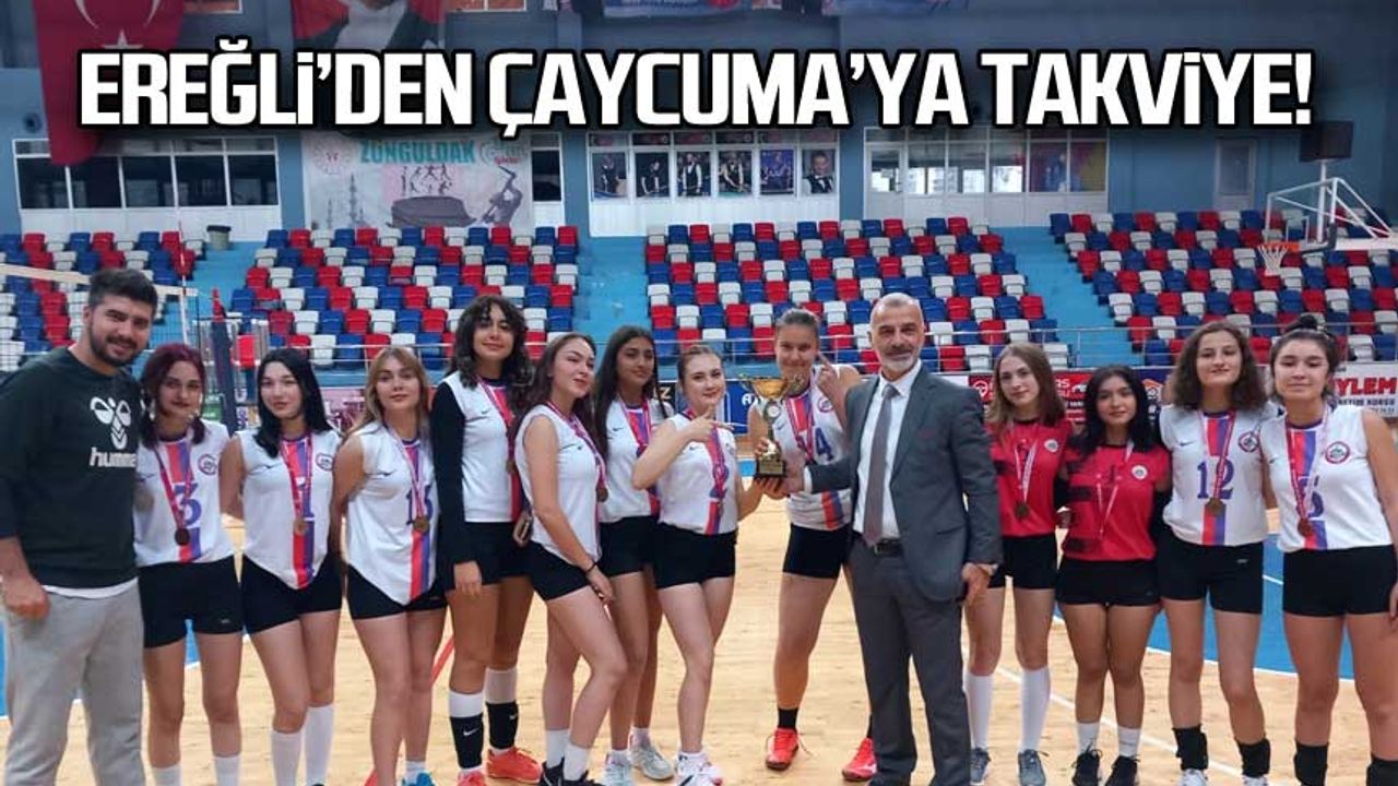 Öte yandan 7-9 Nisan 2023 tarihlerinde Akçakoca’da yapılacak olan Midi Kız Grup Müsabakalarında, talimat gereği tanınan hakka istinaden Kdz.Ereğli Voleybol Spor Kulübü oyuncuları Ada Deniz Durmuş ve Lara Pırıl Cağferoğlu İl Şampiyonu olan Çaycuma Spor Voleybol Midi Kız takımında yer alarak Grup Müsabakalarında ilimizi temsil edecekler. Çaycuma ekibinin rakipleri Düzce, Bartın, Karabük ve Bolu Midi Kız Şampiyonları olacak. Aynı şekilde bu grubun 1’inciside Türkiye Şampiyonasında yer almaya hak kazanacak.