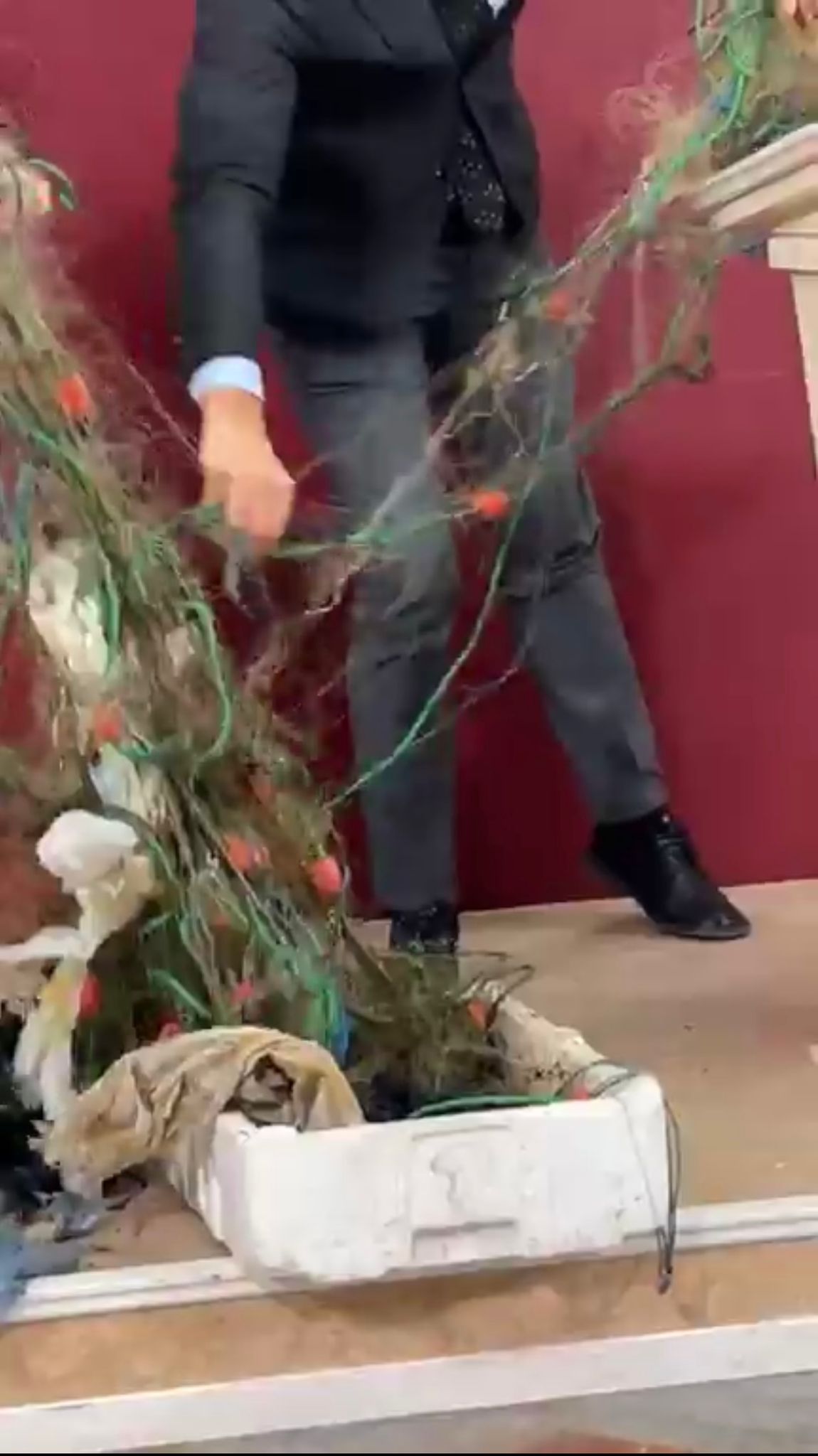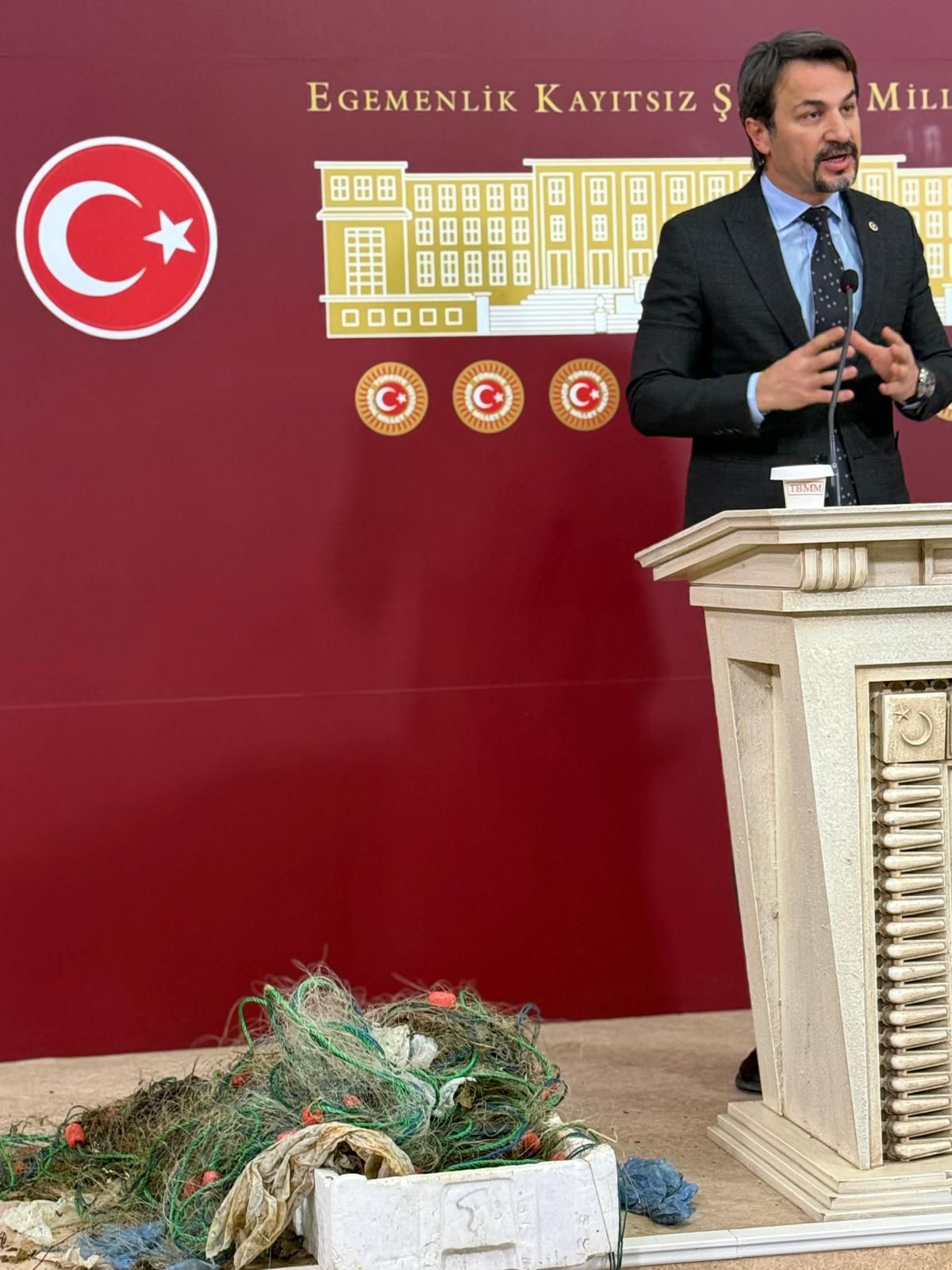 CHP Zonguldak Milletvekili Eylem Ertuğrul, Kozlu’dan getirdiği çöplere bulanmış balık ağlarıyla TBMM’de basın açıklaması yaptı. Ertuğrul, Kozlu’da 2009’dan beri kullanılmayan ancak rehabilite de edilmediği için çevre kirliliğine yol açan denizden balıkçıların çektiği ağları göstererek; “Bu ağlar böyle tonlarca çöp yığınından denize karışmış atıklarla dolu. Normalde bir hafta on gün duran ağlar bir iki günde bu hale gelmiş oluyor. Felaketin ne kadar büyük bir boyutta olduğunu görebiliyor musunuz?” dedi.