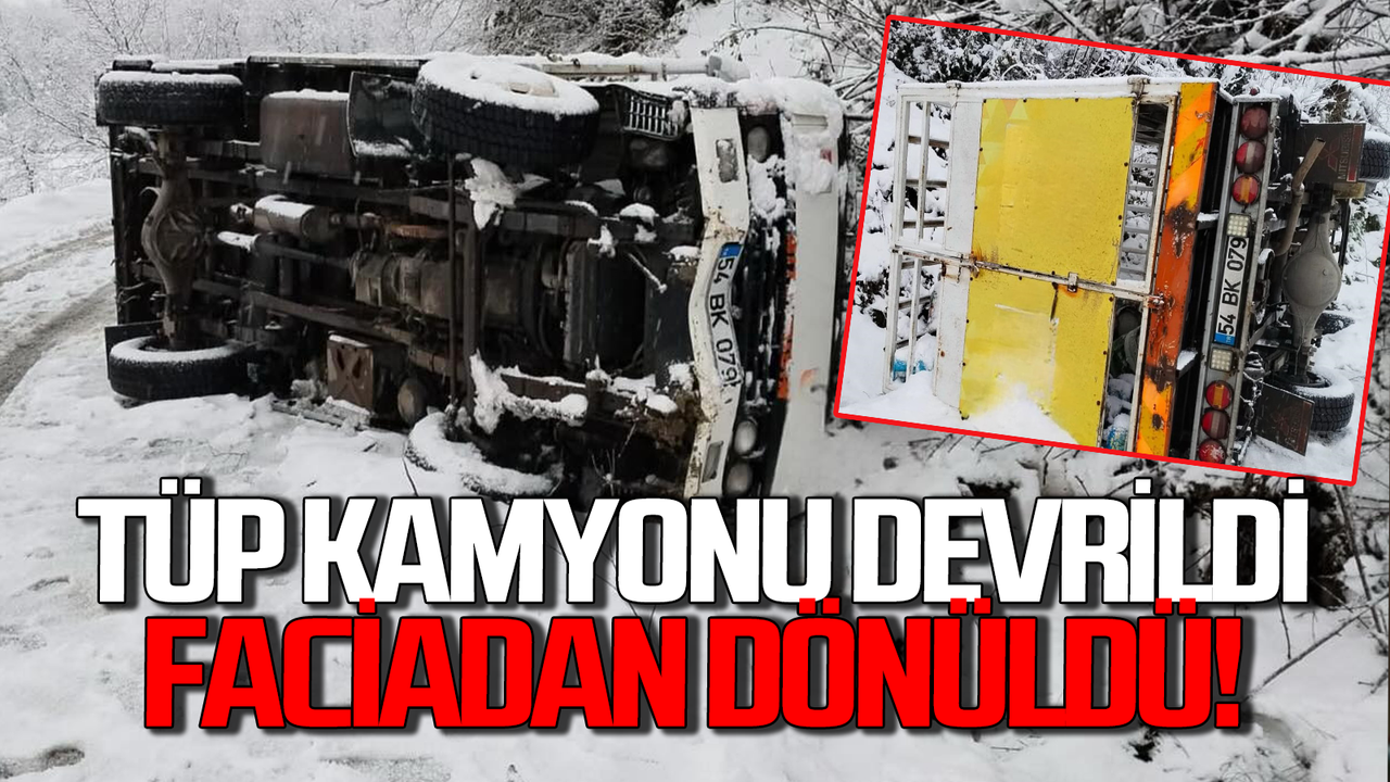 Tüp yüklü kamyonun devrilmesinin ardından tüplerin patlamaması olası bir faciayı önledi.