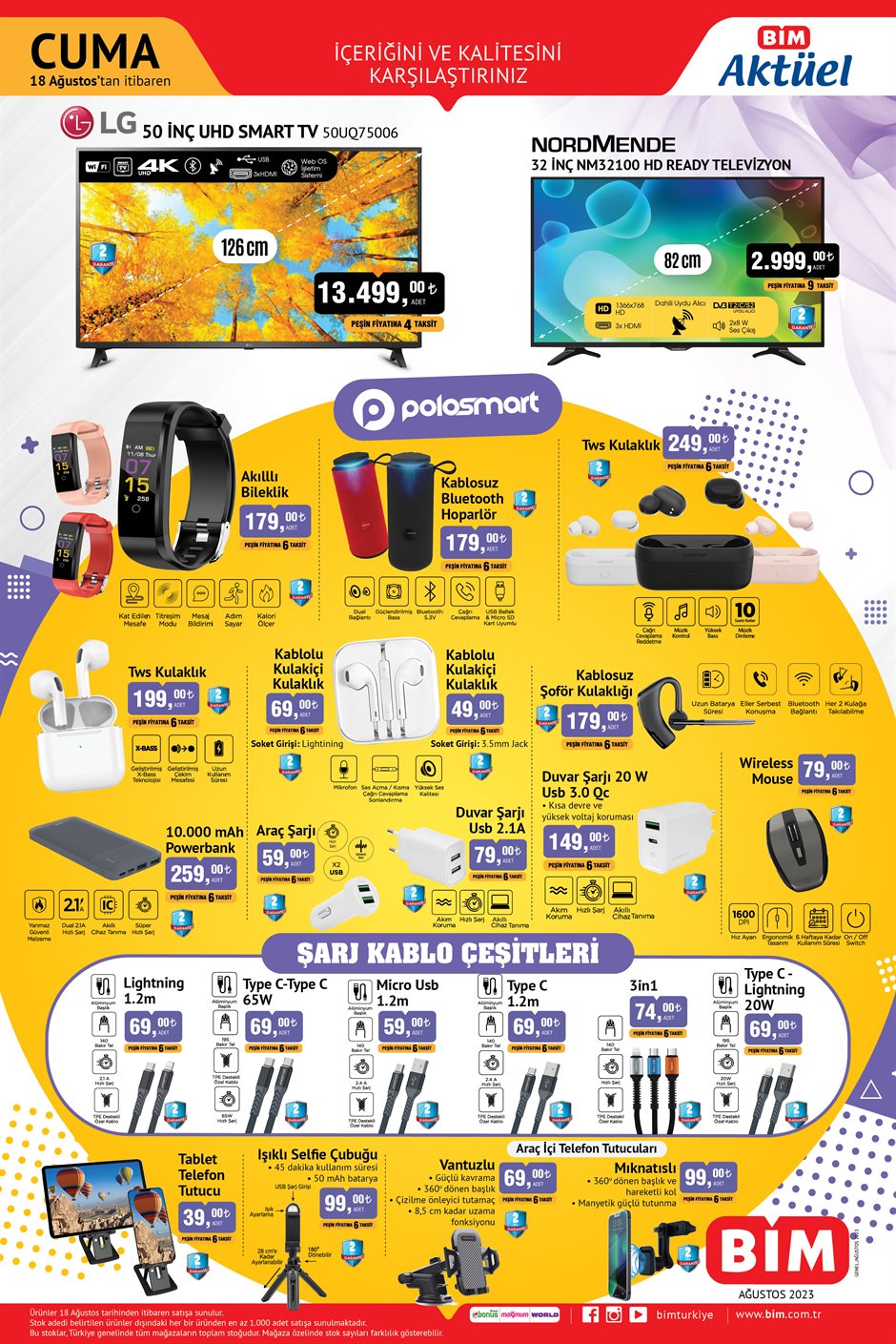 Bu Cuma Bimde indirimde neler var? sorusunun bütün cevaplarının yer aldığı 18 Ağustos 2023 Bim Kataloğu'nda Teknoloji ürünleri, Züccaciye ürünleri, Elektrikli Bisikletler, Ev tekstilil ve hırdavat ürünleri sizlerle..gelin hep birlikte 18 Ağustos Bim Kataloğu'na göz atalım..