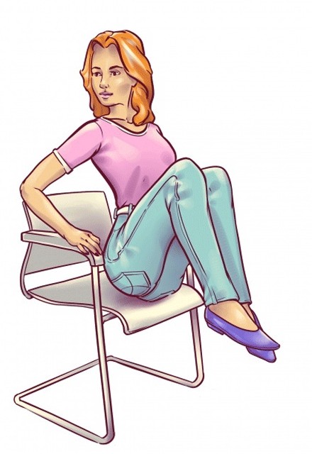 1) Sandalyenin ucuna sırtınız dik bir şekilde pozisyonda oturun ve iki elinizle sandalyenin kenarlarına kısımlarını tutunun.