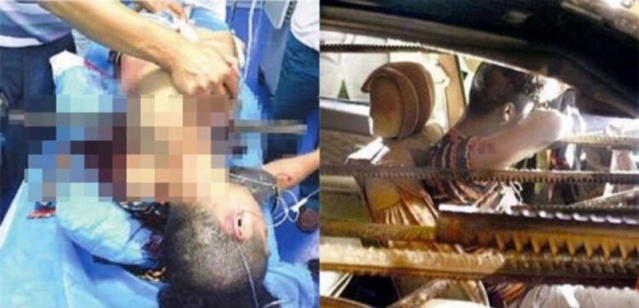 Aracıyla demir yüklü kamyona çarpan talihsiz adam kamyondan fırlayan onlarca demir aracına ok gibi saplandı.
