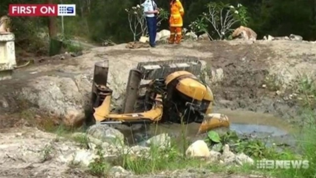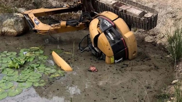 İş makinası ile kaza yapan operatör çamur bataklıgına devrildi. şans eseri santimlerle boğulmaktan kurtuldu