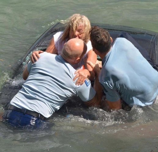 Lüks otomobili ile nehire düşen kadın boğulmaktan son anda kurtuldu. o anlarda panik fotoğraflara böyle yansıdı.