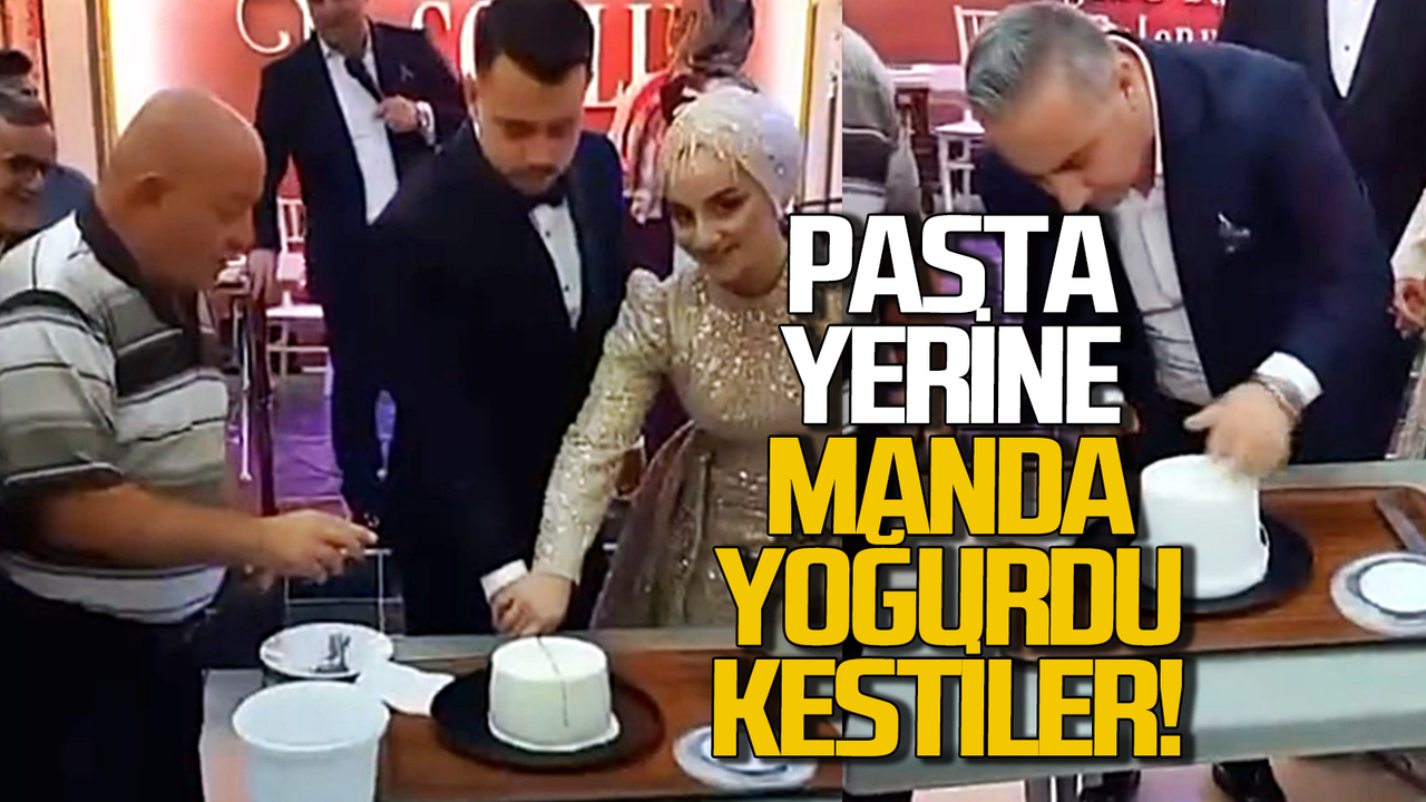 “Sonunda bu da oldu” dedirten olaya şahitlik eden davetliler genç çifte pasta yerine kesmek için manda yoğurdu gelmesi karşısında büyük bir şaşkınlık geçidi.