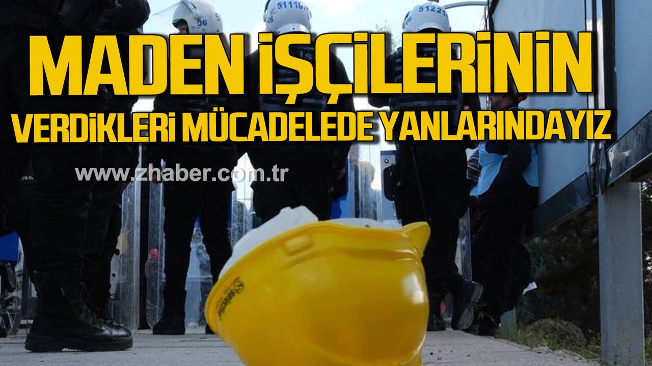 Büyük özverilerle ve canları pahasına vatanına ve milletine hizmet eden, ailelerinin geçimini sağlayan maden işçilerinin ve haklarının ödenmesi, işten çıkarılan arkadaşlarının geri alınması için başlattıkları mücadelenin yanındayız ve taleplerinin eksiksiz yerine getirilmesi için tüm yetkililere çağrıda bulunuyoruz.