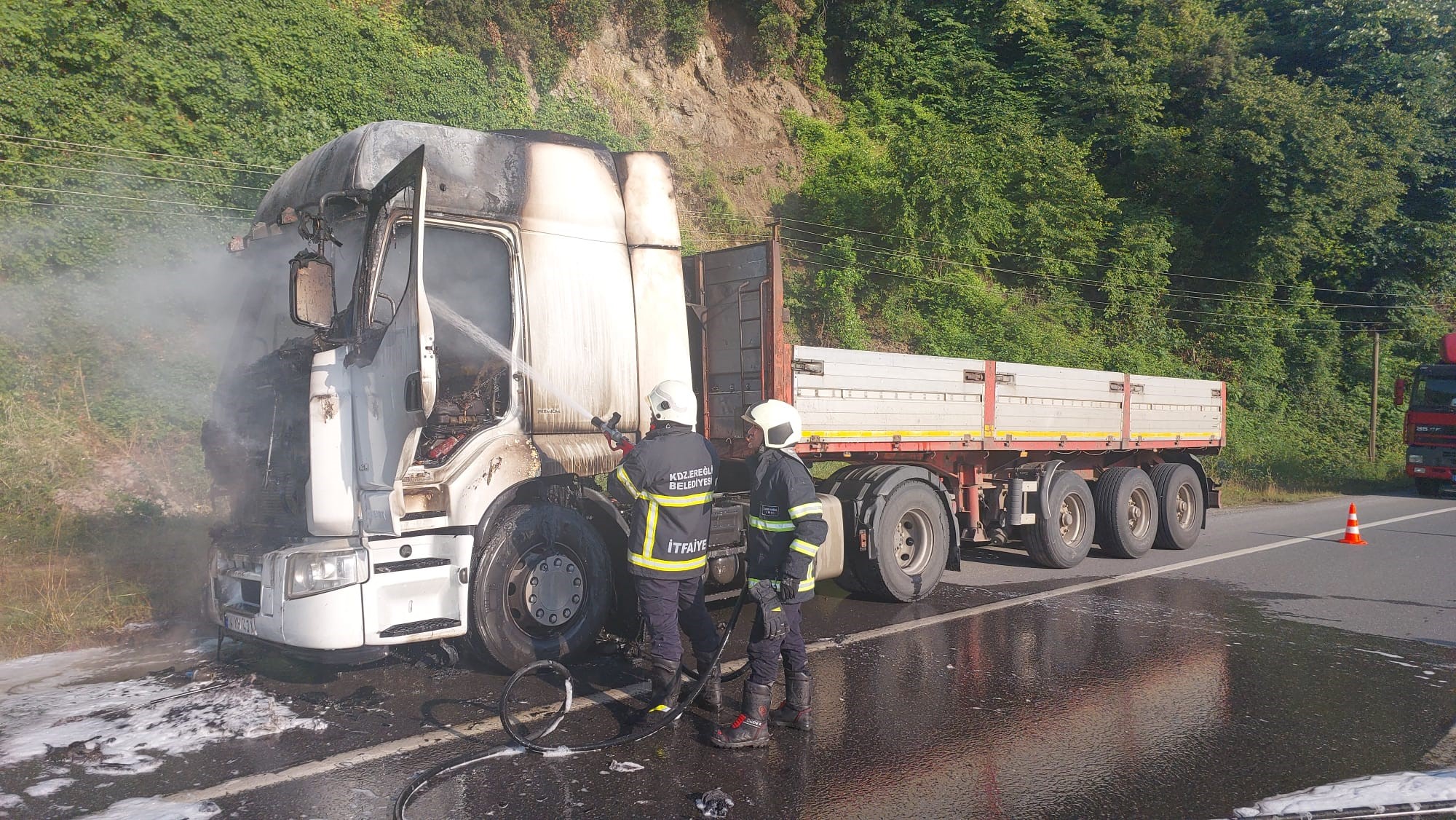 Olay, Kdz. Ereğli ilçesi Tersaneler Bölgesi'nde meydana geldi. İ.K. isimli sürücü, 14 DL 539 plakalı aracına yük yüklemek üzere Kdz. Ereğli ilçesine hareket etti. Sürücü tırıyla seyir halindeyken elektrik kontağından çıktığı düşünülen yangın bir anda aracın etrafını kapladı. Tırı yol kenarına park ederek inen sürücü durumu itfaiye ekiplerine haber verdi. Kdz. Ereğli Emniyet Müdürlüğüne bağlı trafik ekiplerinin çevrede geniş güvenlik önlemi aldığı olayda itfaiye ekipleri söndürme ve soğutma çalışması yaptı. Olayın şokunu üzerinden atlatamayan sürücü, "Gelirken aracın sağ tarafından beri bir anda alev aldı" dedi.