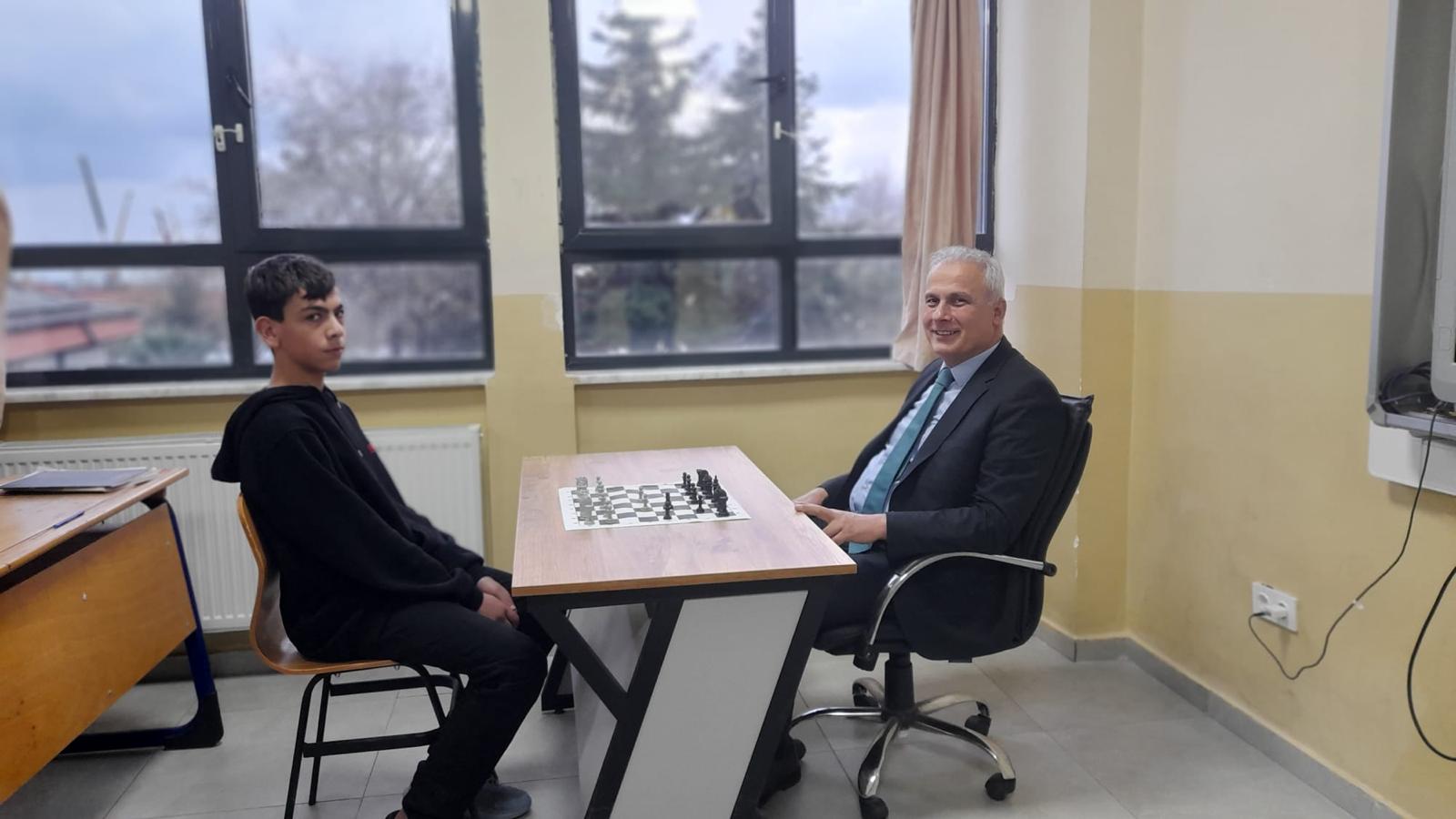 Ziyaret kapsamında okulda devam eden Satranç Egzersiz Çalışmasına da katılan Akgül, öğrencilerle satranç üzerine sohbet ederek başarı dileklerini iletti.
