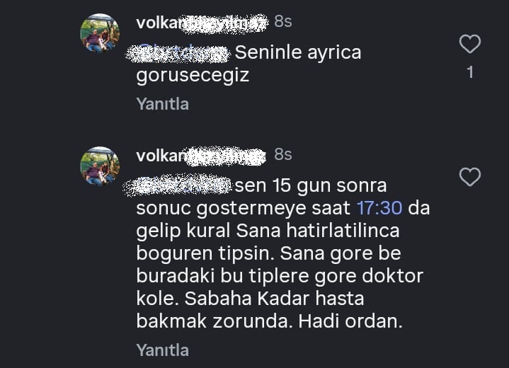Olayın ardından haberin altına yapılan yorumlara ilişkin açıklama yapan Doktor V.Y., kendisine yönelik eleştirilere de yanıt verdi.