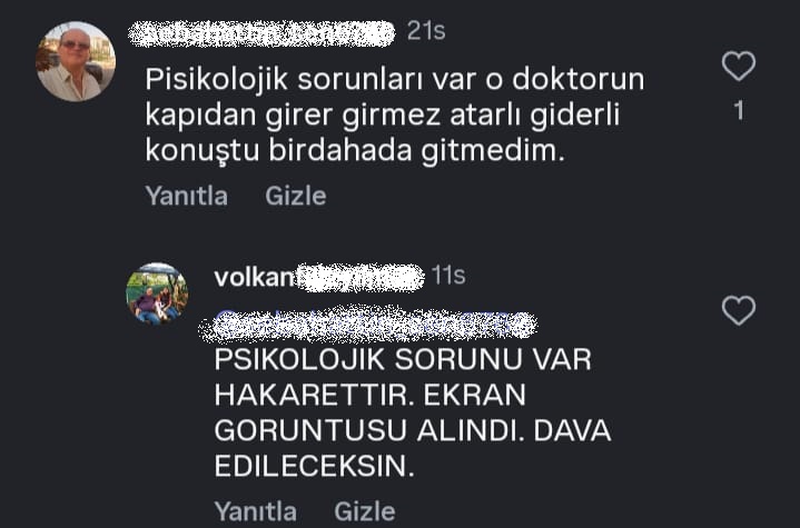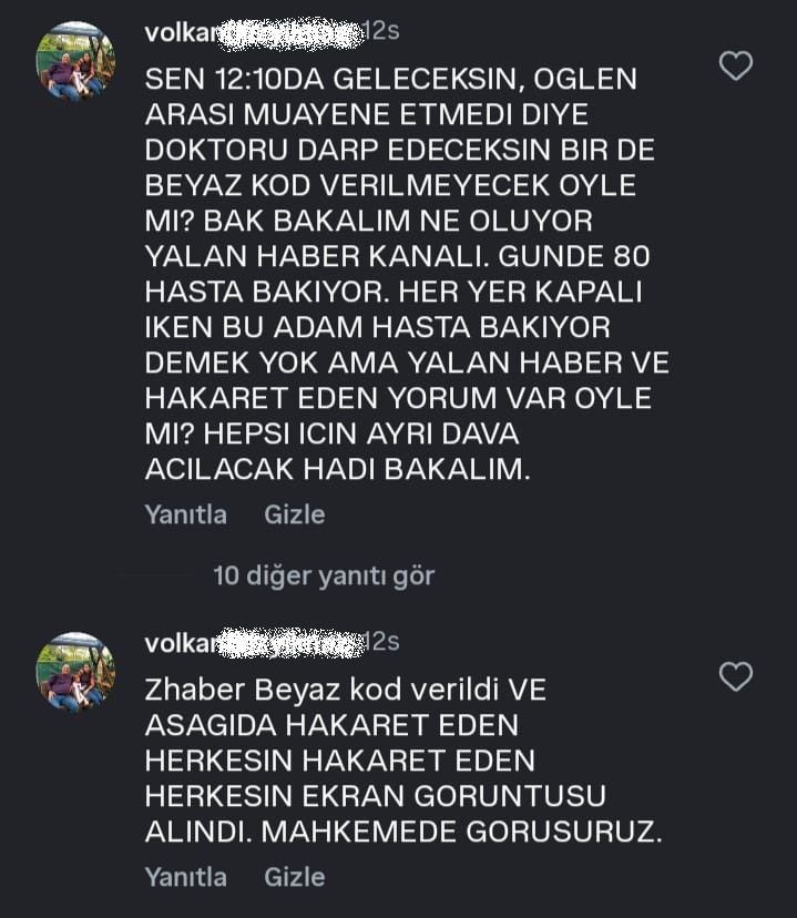 Doktor V.Y., eleştirinin doğal olduğunu ancak kişisel saldırılara sessiz kalmayacağını belirterek, kendisine yönelik hakaret içerikli yorumlarla ilgili dava açılacağını açıkça ifade etti.