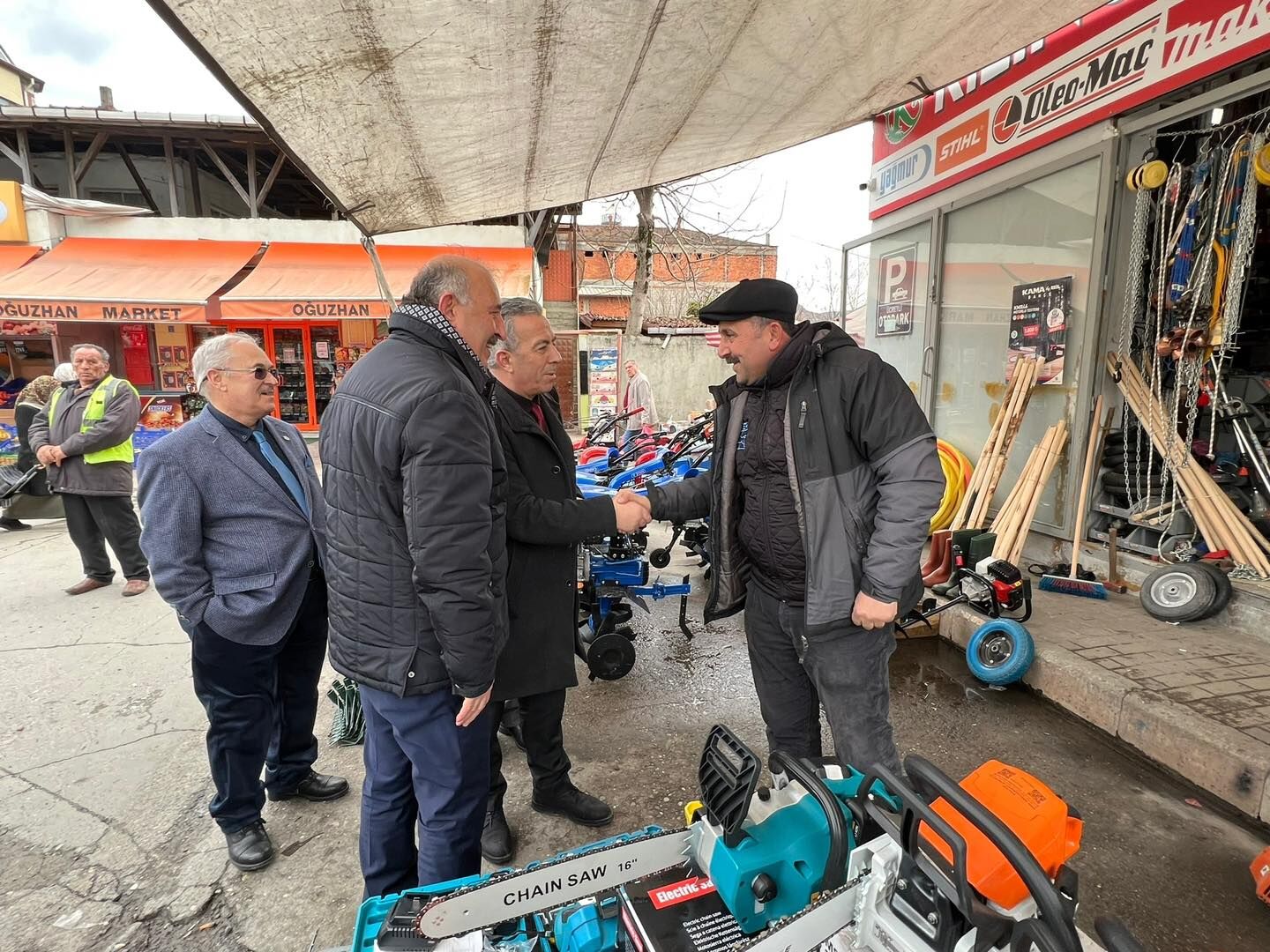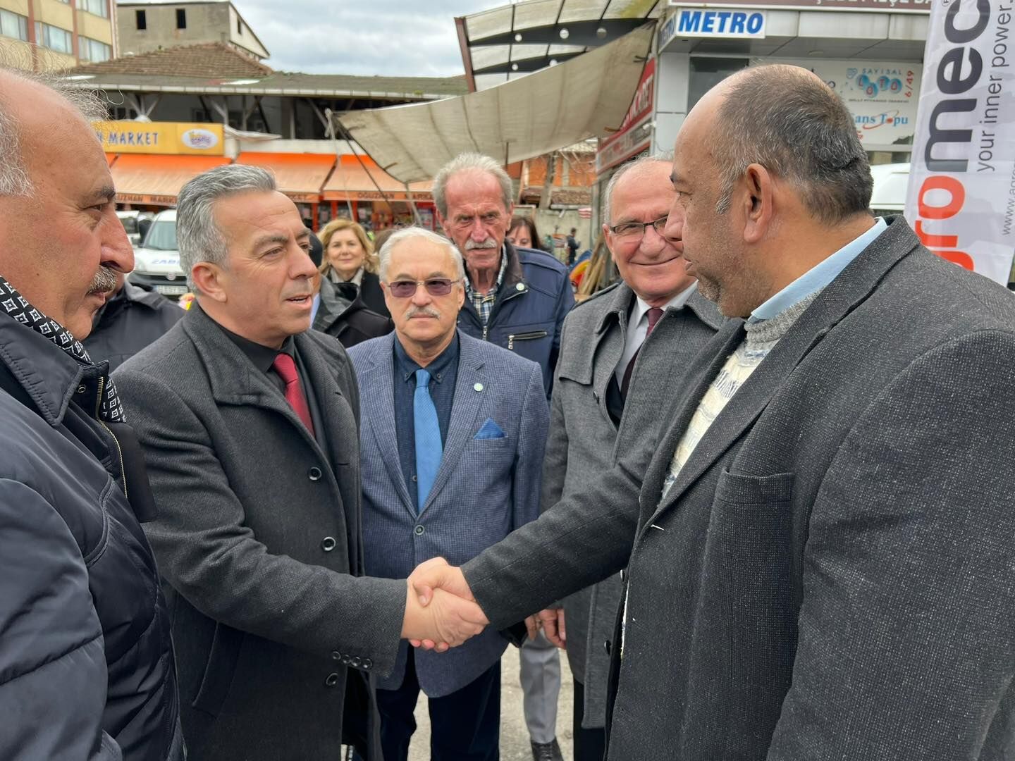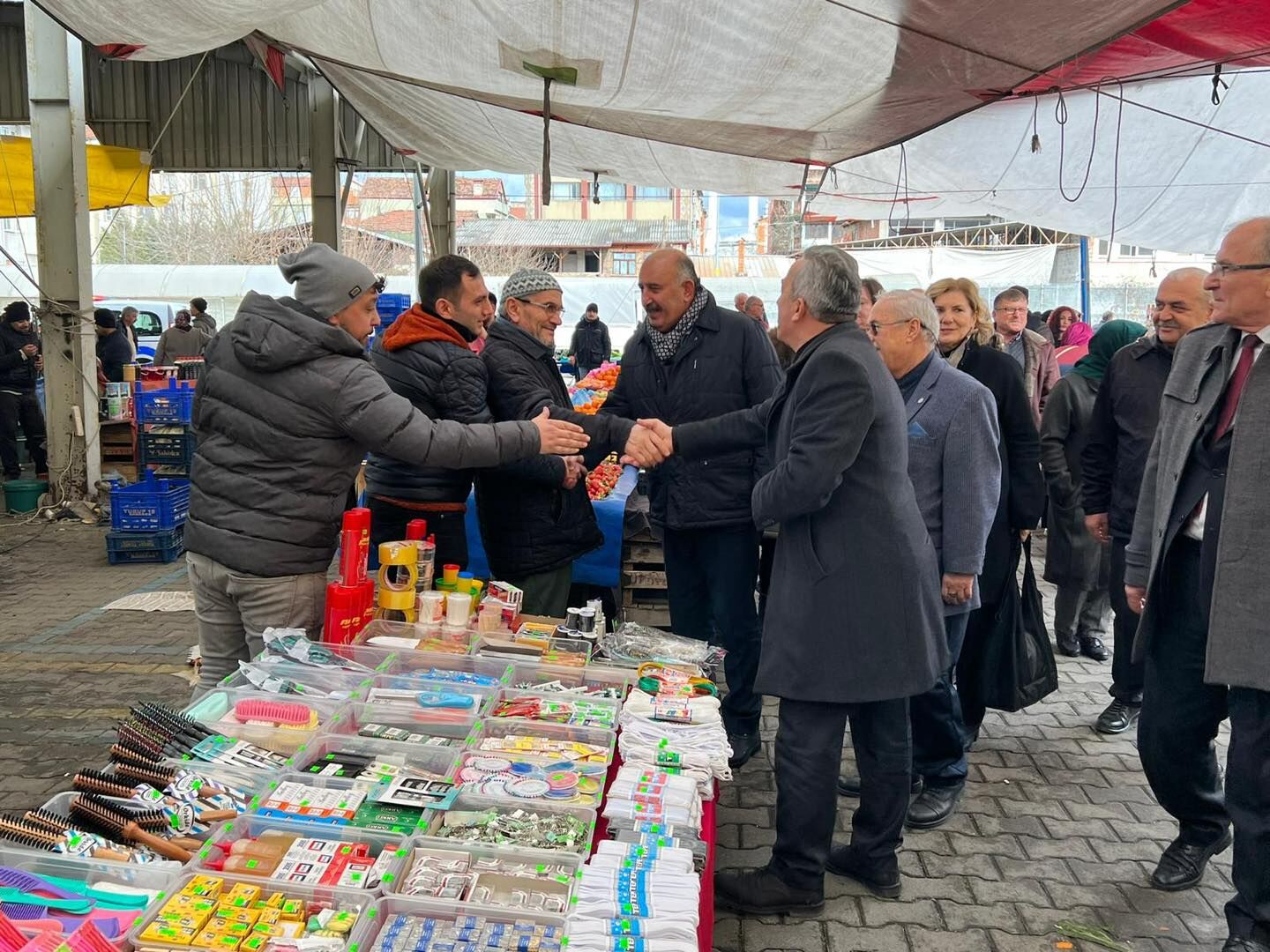 Başkan Gülay, Belediye ziyaretin ardından Belediye Başkanı Vedat Öztürk ile birlikte pazarcı esnafa ziyarette bulunup hayırlı işler temennisinde bulundular.