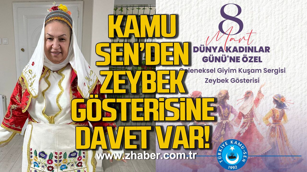 “Türkiye Kamu-Sen Zonguldak İl Temsilciliği olarak 8 Mart Dünya Kadınlar Günü münasebetiyle düzenleyeceğimiz Geleneksel Giyim Kuşam Sergisi ve Zeybek Gösterisine tüm halkımız davetlidir. Kültürümüzün zarafetini ve milli değerlerimizin asaletini yansıtan bu özel programda sizleri de aramızda görmekten onur duyarız.”
