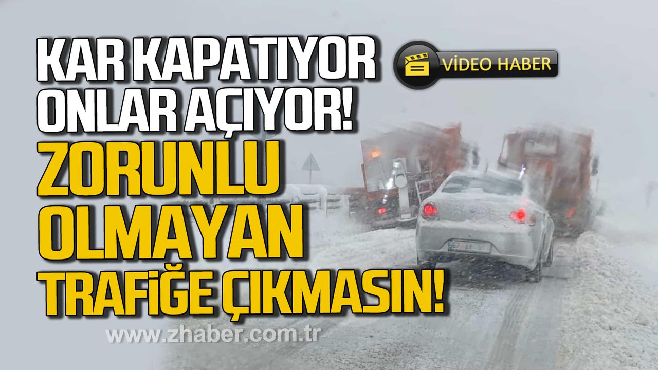 Zonguldak İl Özel İdaresi ekipleri yoğun kar yağışı altında olan Zonguldak-Ereğli yolunu açık tutmaya çalışıyor.karla mücadele ekipleri sadece kapanan yolları açmakla kalmıyor; yolda mahsur kalan vatandaşlarada destek veriyor.