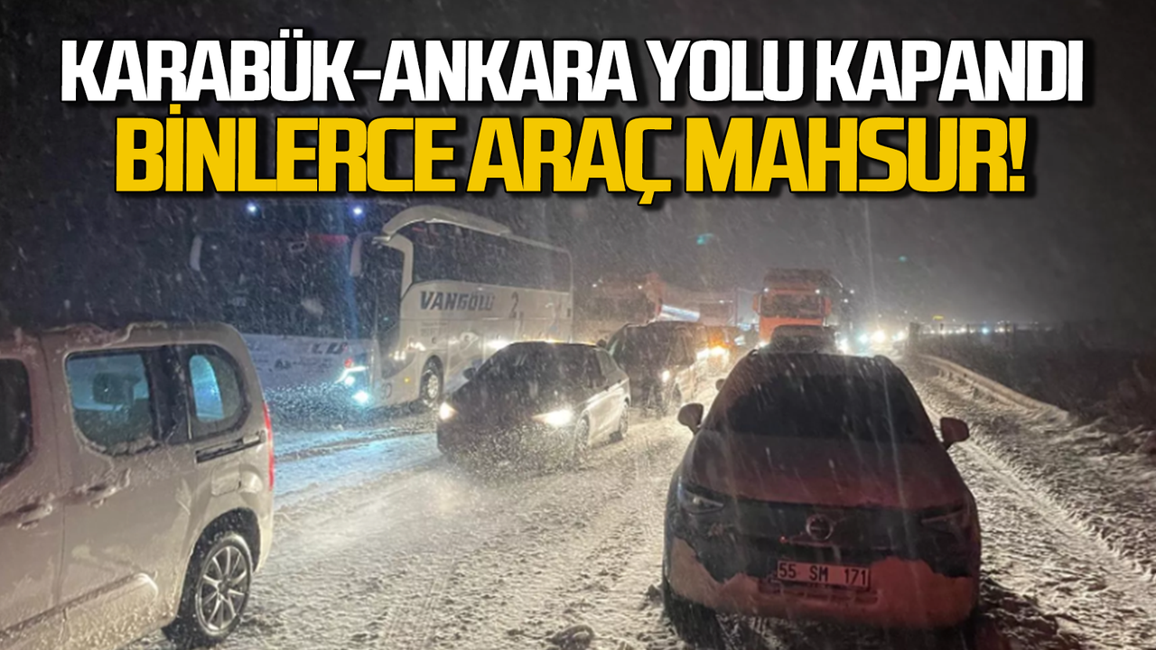 Karabük İl sınırı ile Gerede arasında yoğun kar yağışı nedeniyle kapanan yolda binlerce araç mahsur kaldı.