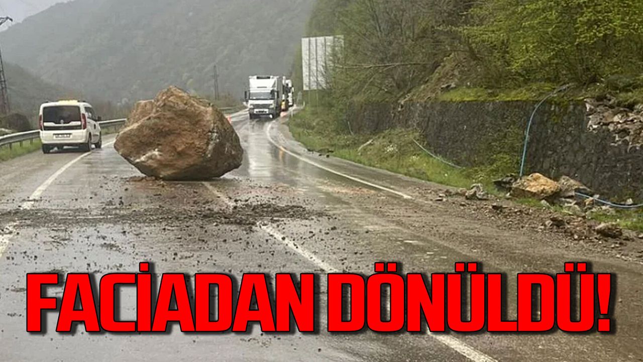 Etkili olan sağanak yağışın ardından yumuşayan toprağın etkisiyle yamaçtan kopan dev kaya parçası kara yoluna yuvarlandı. Kayanın düştüğü sırada yoldan geçen araçların bulunmaması olası bir faciayı önledi. Bir sürücünün cep telefonu kamerasına yansıyan görüntülerde, yağışlı havada ilerleyen araçların yolun ortasına kadar uzanan kaya kütlesini fark ederek durduğu ve manevra yaparak yanından geçmeye çalıştığı görüldü.