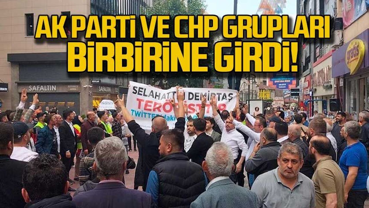 CHP'Lİ GRUP TÜRK BAYRAĞI AÇIP İSTİKLAL MARŞI OKUDU, AK PARTİLİ GRUP PANKART AÇTI